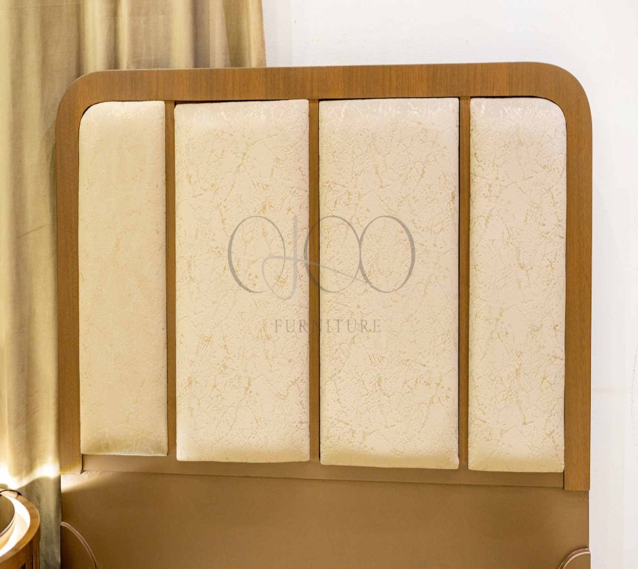 سرير خشبي من أخشاب طبيعية مع تنجيد ظهر السرير للراحة