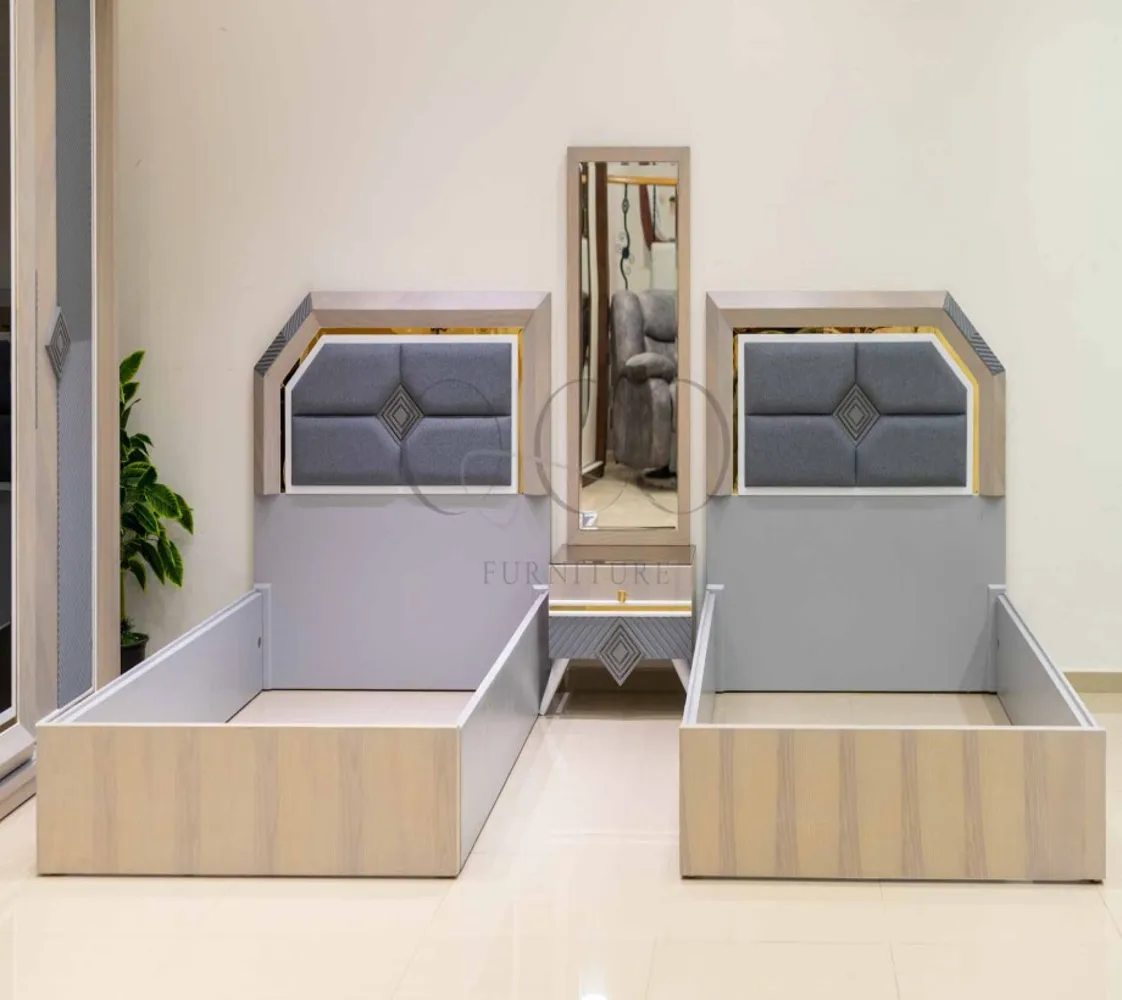 سرير خشبي من أخشاب طبيعية مع تنجيد ظهر السرير للراحة
