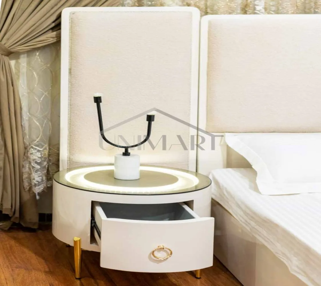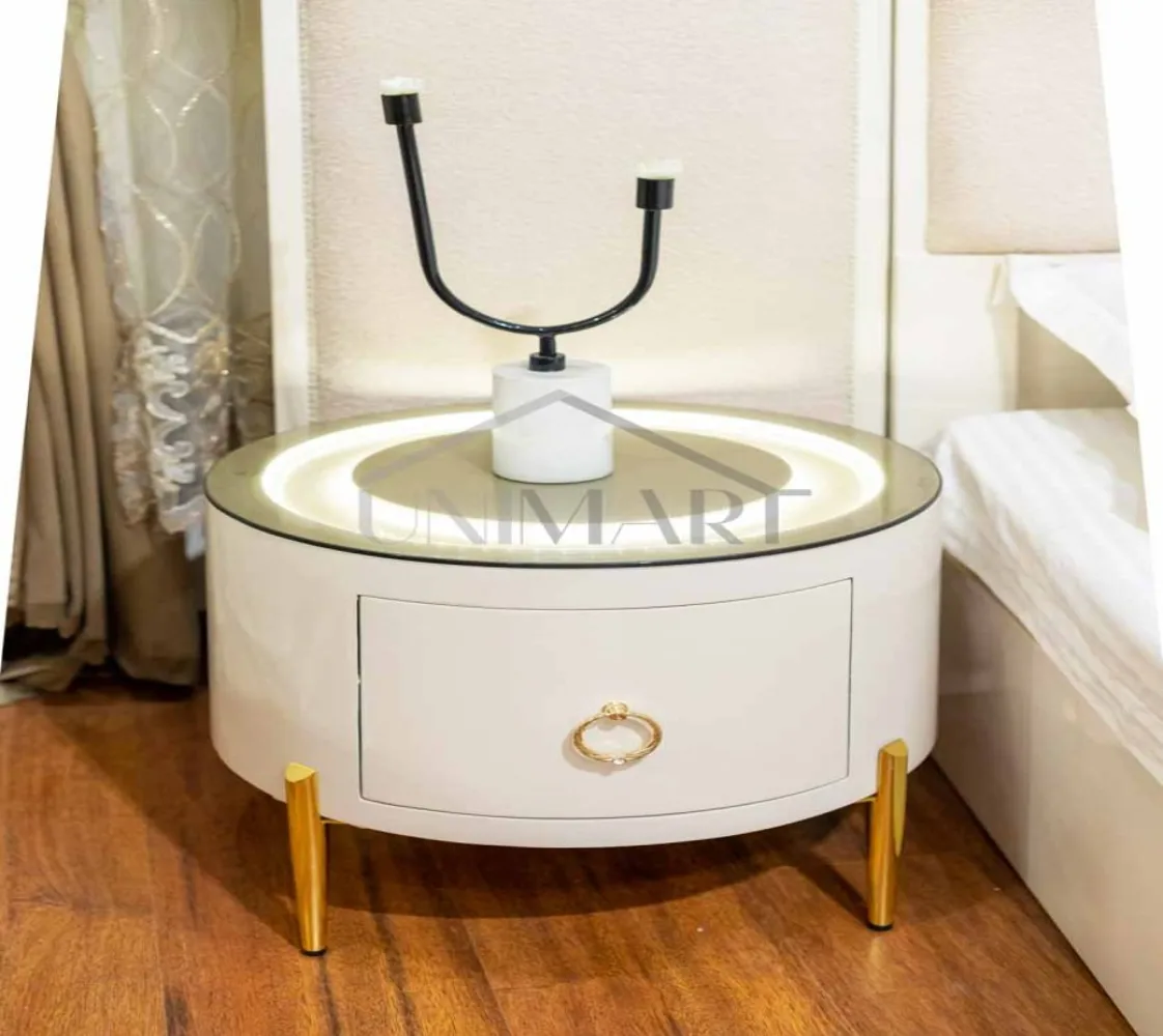 طاولة جانبية آمنة وأنيقة ، مقاومة للانقلاب ، بلون ابيض ، تصميم عصرى درج، سطح خشبي،