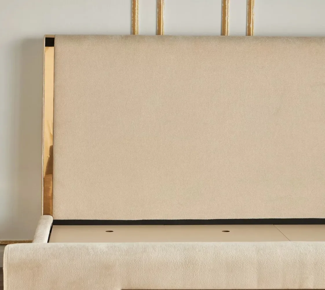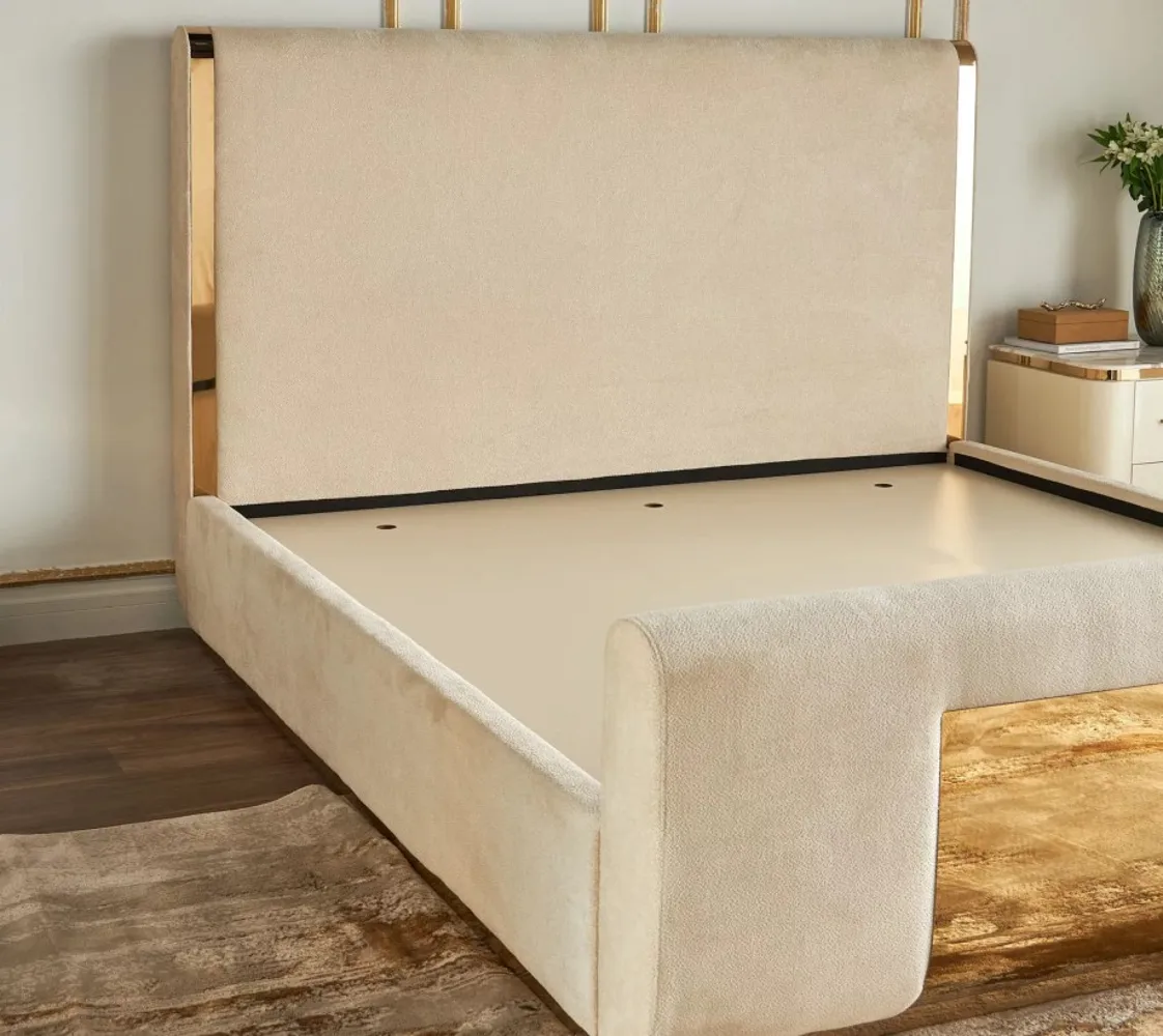أضف لمسة جذابة إلى منزلك مع هذا السرير المنجد. تمنح اللمسات المعدنية على لوح الرأس ولوح القدم مظهرًا أنيقًا وجريئًا. يضمن القماش المعالج بالأداء 350 جرامًا لكل متر مربع المتانة. كما يعزز هيكل لوح السرير الثبات ويضمن وضعية الجسم الجيدة.