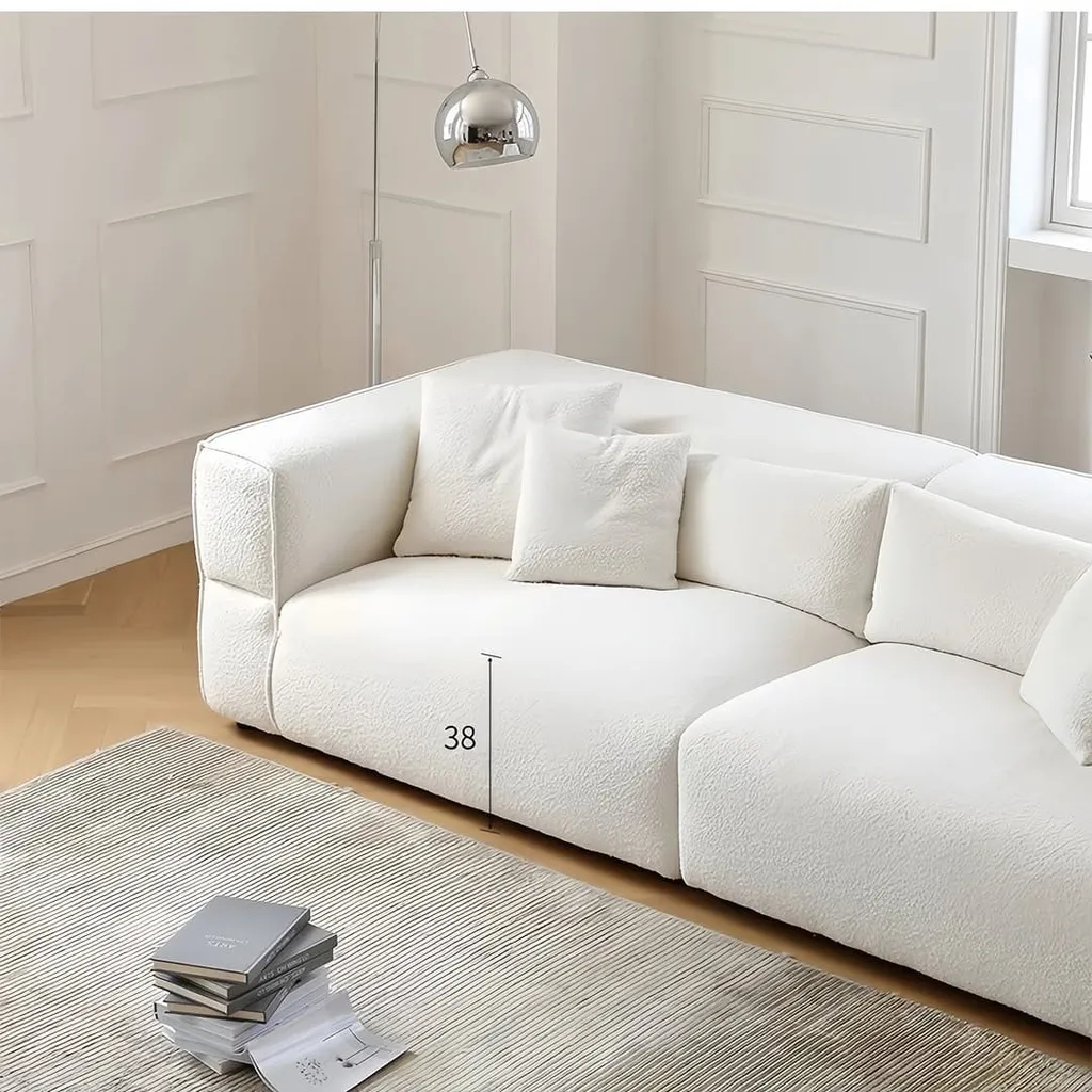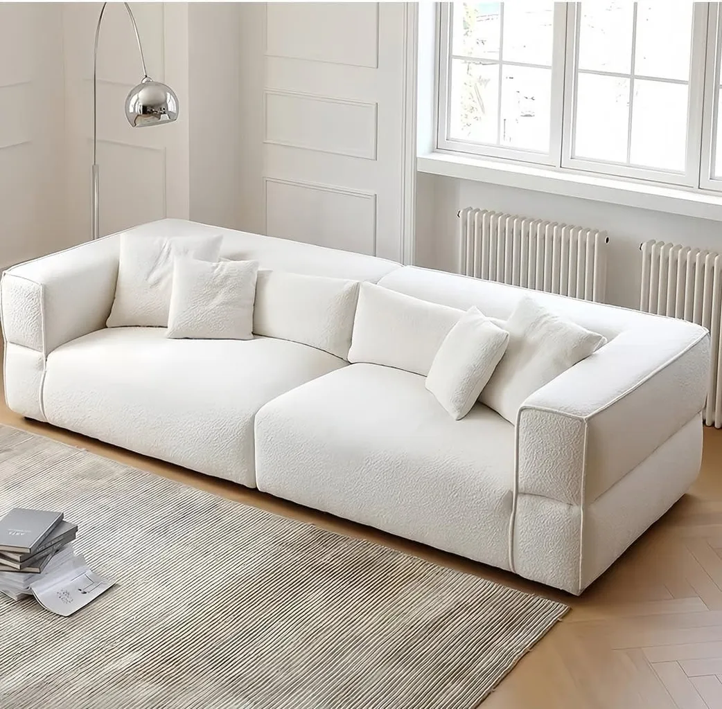 أريكة ثنائية أنيقة من قماش البوكليه الأبيض، مصنوعة من خشب الزان المتين، تتميز بتصميم عصري يضفي لمسة من الفخامة والراحة إلى أي مساحة معيشة.