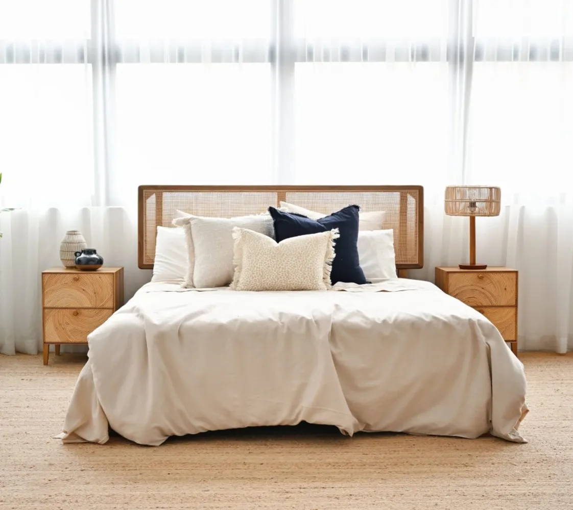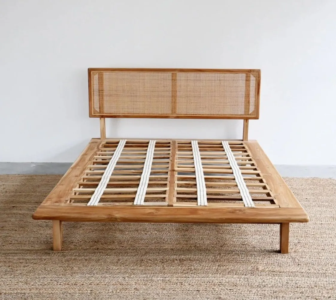 كما أن السرير مصنوع من الروطان والقاعدة الصلبة المصنوعة من الخشب الزان