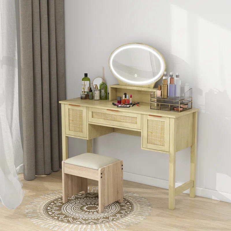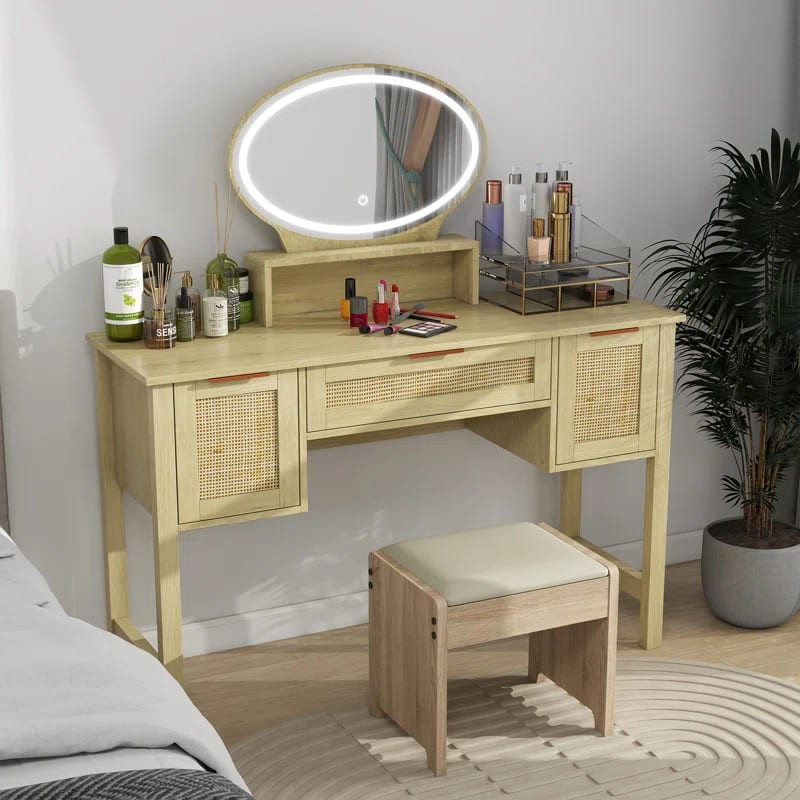 تسريحة خشبي هي قطعة أثاث فاخرة مصنوعة من الخشب الصلب عالي الجودة. تأتي بلون خشبي جميل ومقاسات مثالية للاستخدام اليومي في غرفة النوم. ومزودة بالداخل بمساحات تخزين وتضم مقعد جميل