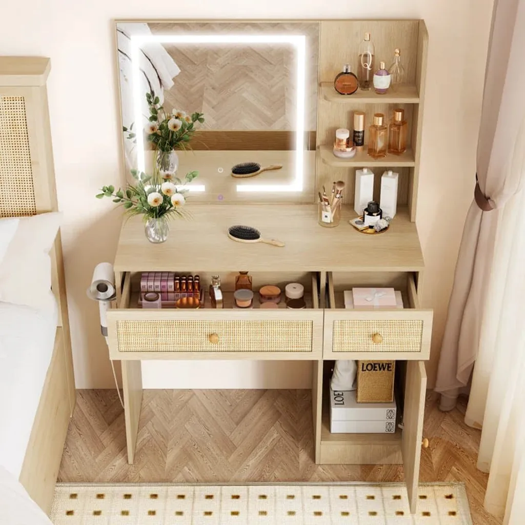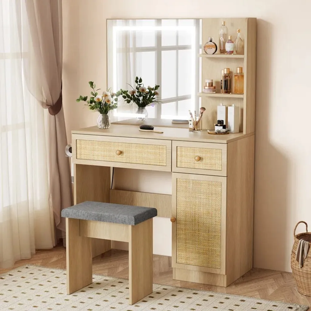 تسريحة خشبي هي قطعة أثاث فاخرة مصنوعة من الخشب الصلب عالي الجودة. تأتي بلون خشبي جميل ومقاسات مثالية للاستخدام اليومي في غرفة النوم. ومزودة بالداخل بمساحات تخزين وتضم مقعد جميل