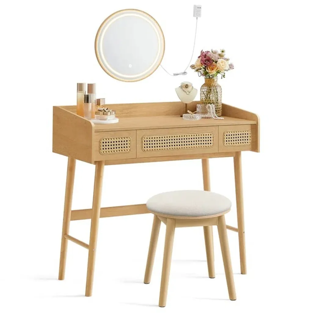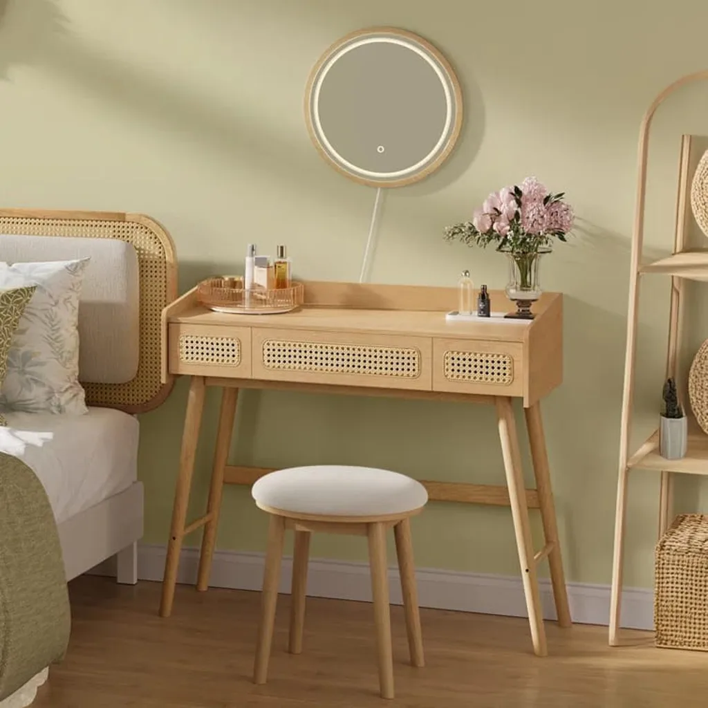 تسريحة خشبي هي قطعة أثاث فاخرة مصنوعة من الخشب الصلب عالي الجودة. تأتي بلون خشبي جميل ومقاسات مثالية للاستخدام اليومي في غرفة النوم. ومزودة بالداخل بمساحات تخزين وتضم مقعد جميل