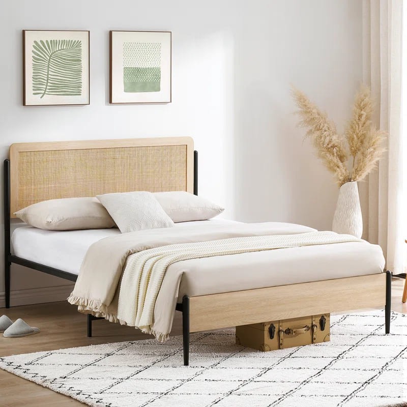 كما أن السرير مصنوع من الروطان والقاعدة الصلبة المصنوعة من الخشب الزان