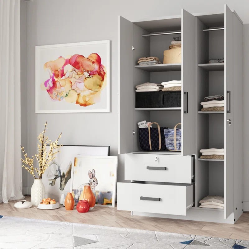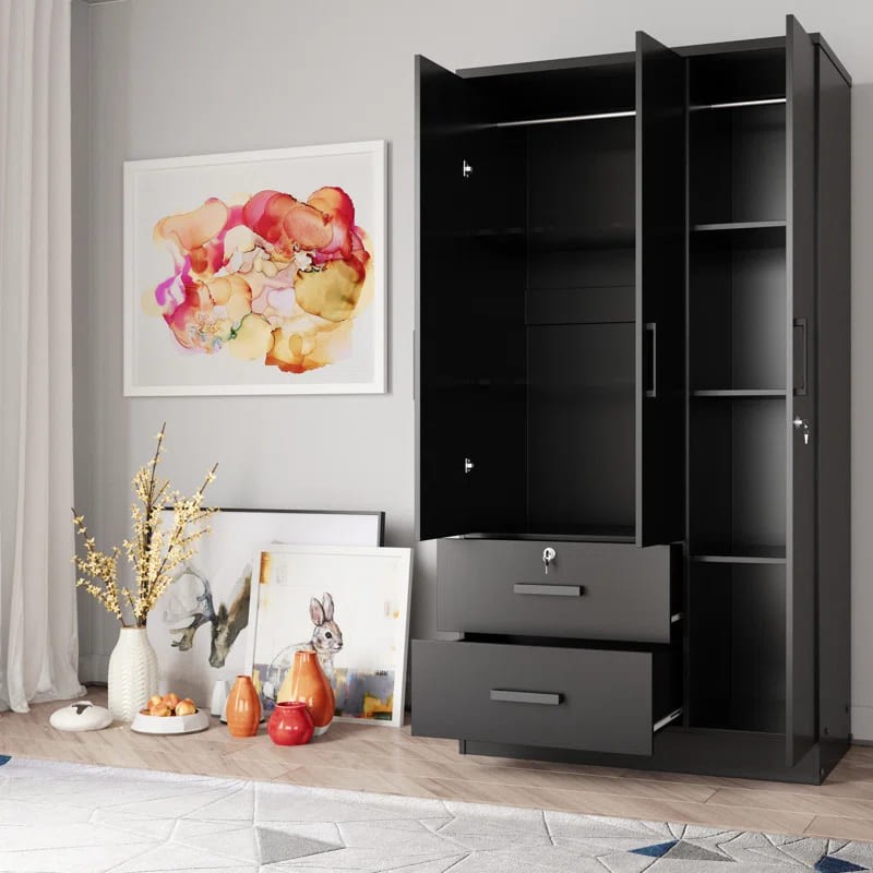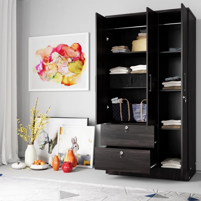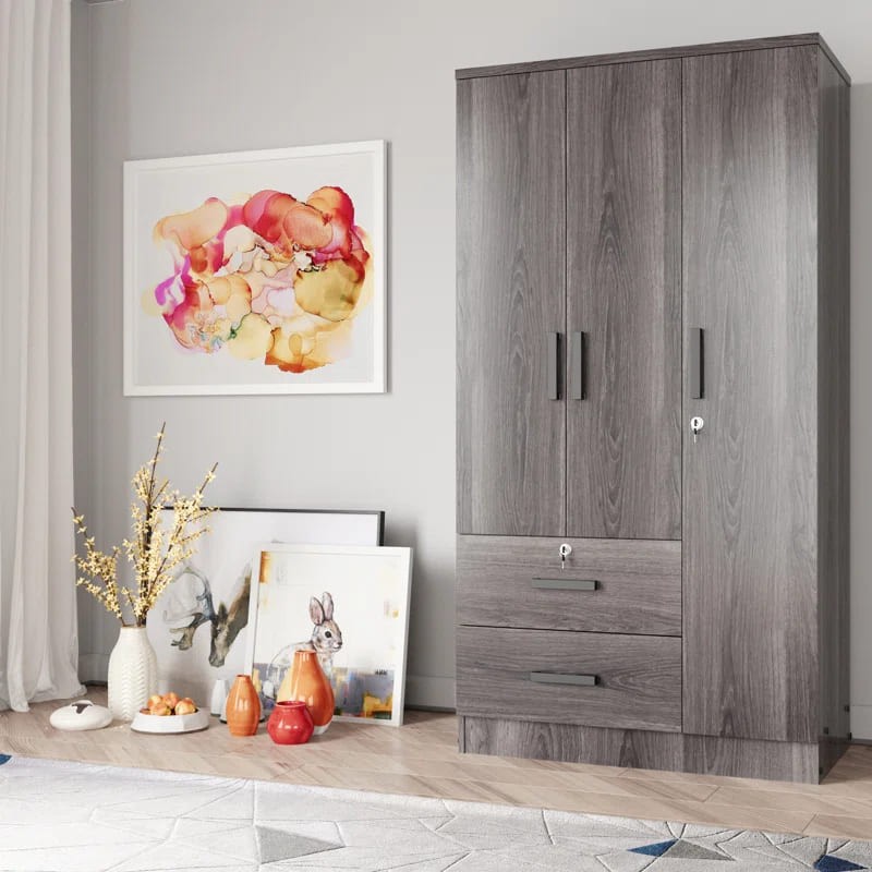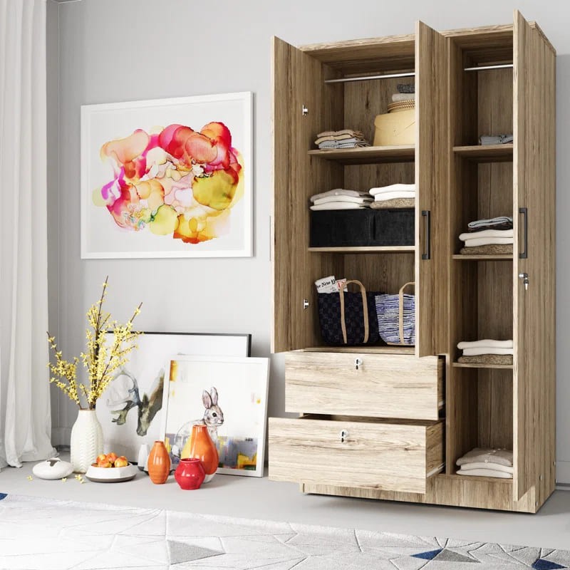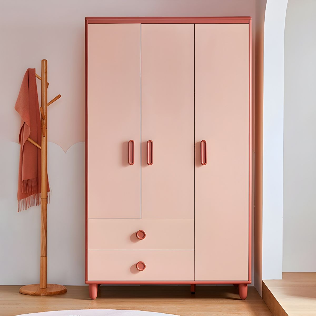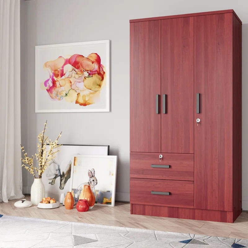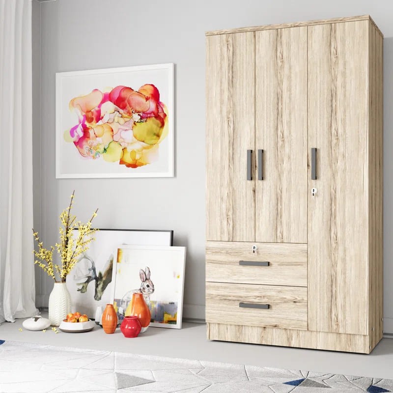 خزانة ملابس للأطفال مصنوعة من أخشاب طبيعية يأتي بألوان متعددة الأسود والأبيض والخشبي و الأحمر والرمادي لتختار ما يناسب ديكور منزلك مع رف وقضيب ملابس وباب بسيط و2 درج