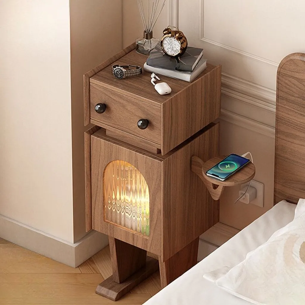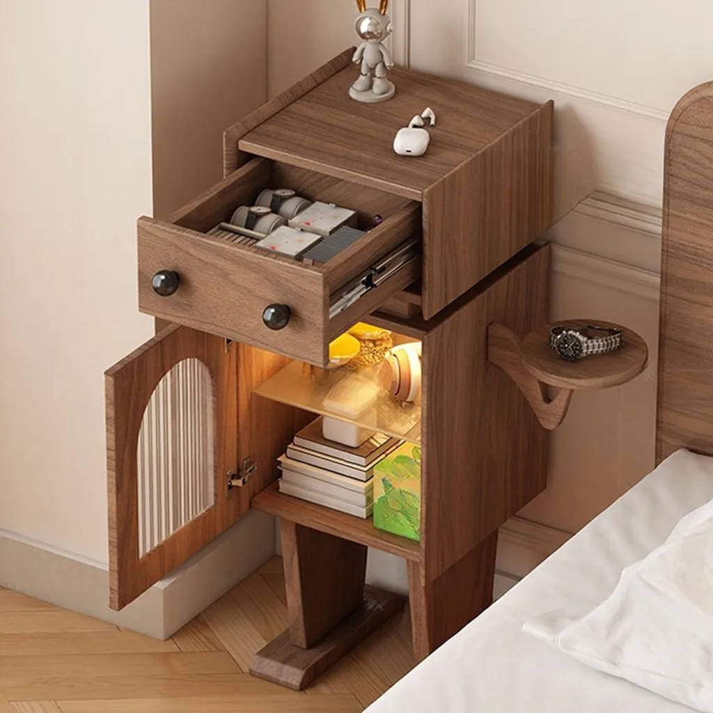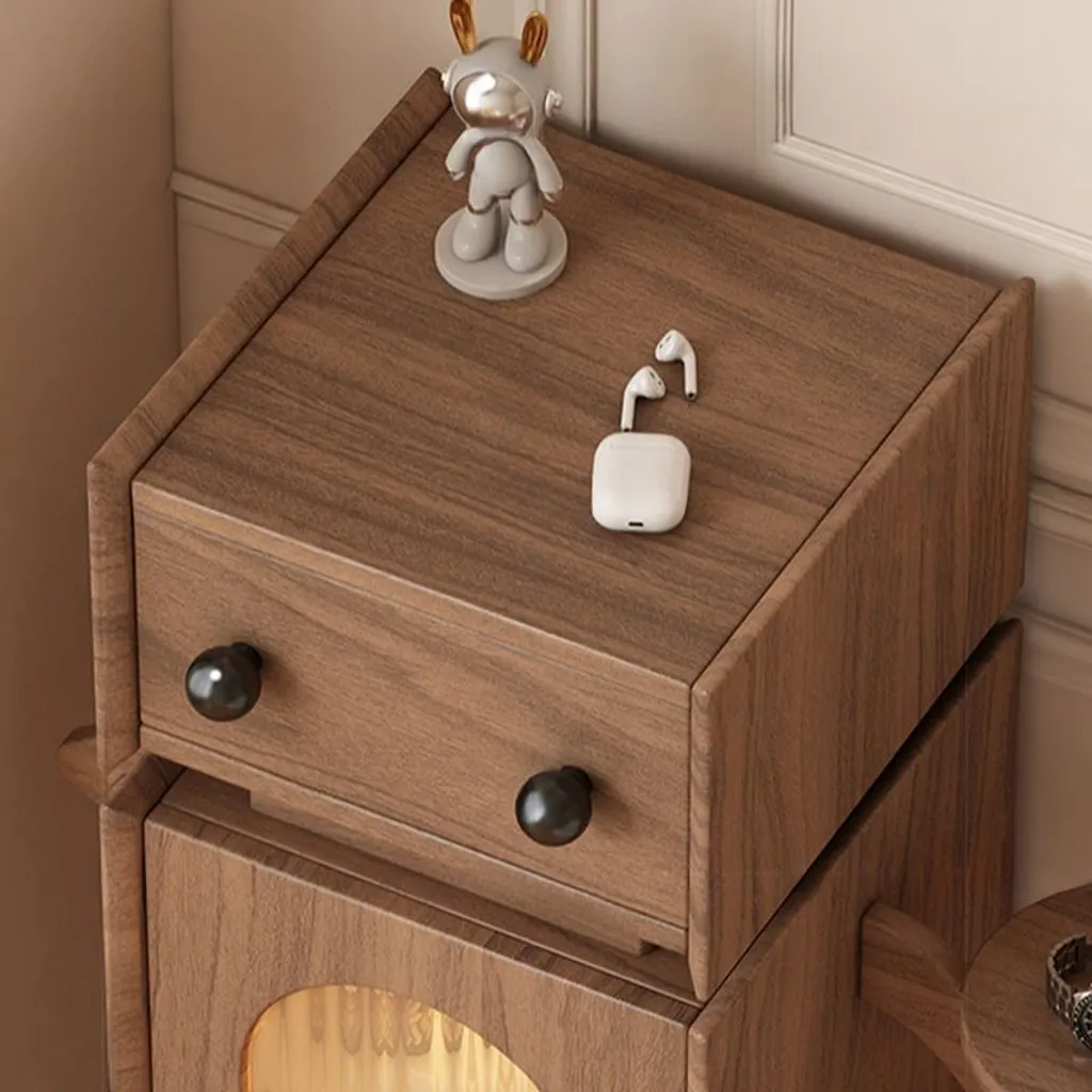 مصنع من الخشب الطبيعي مع درج وخزانة ورف واحد، يأتي بلون خشبي أنيق.