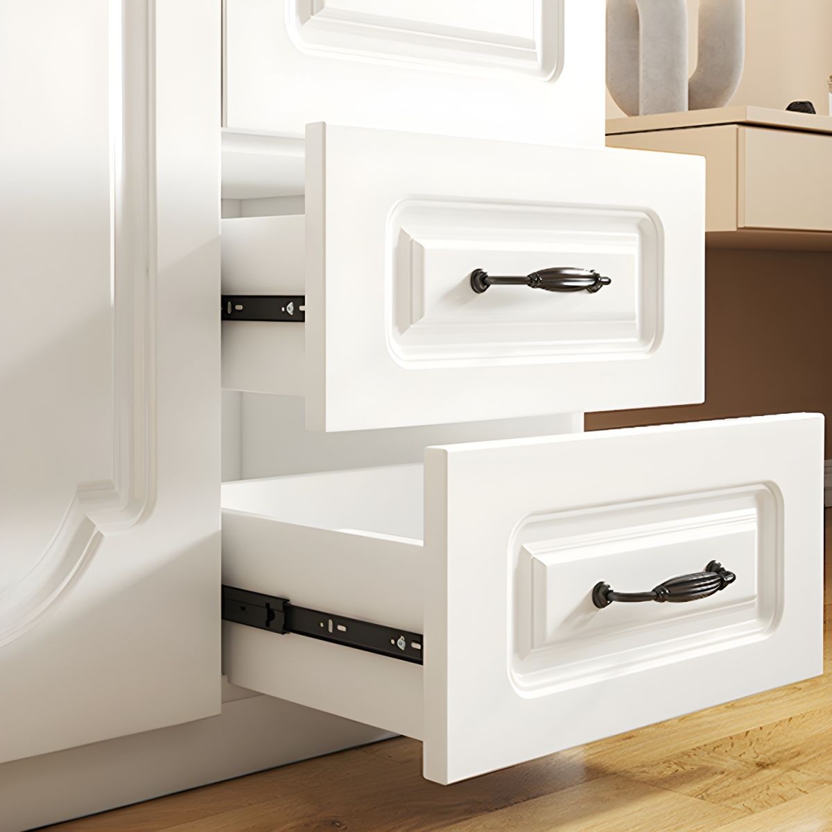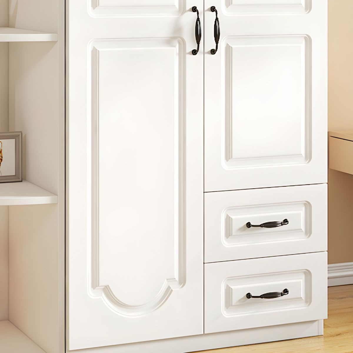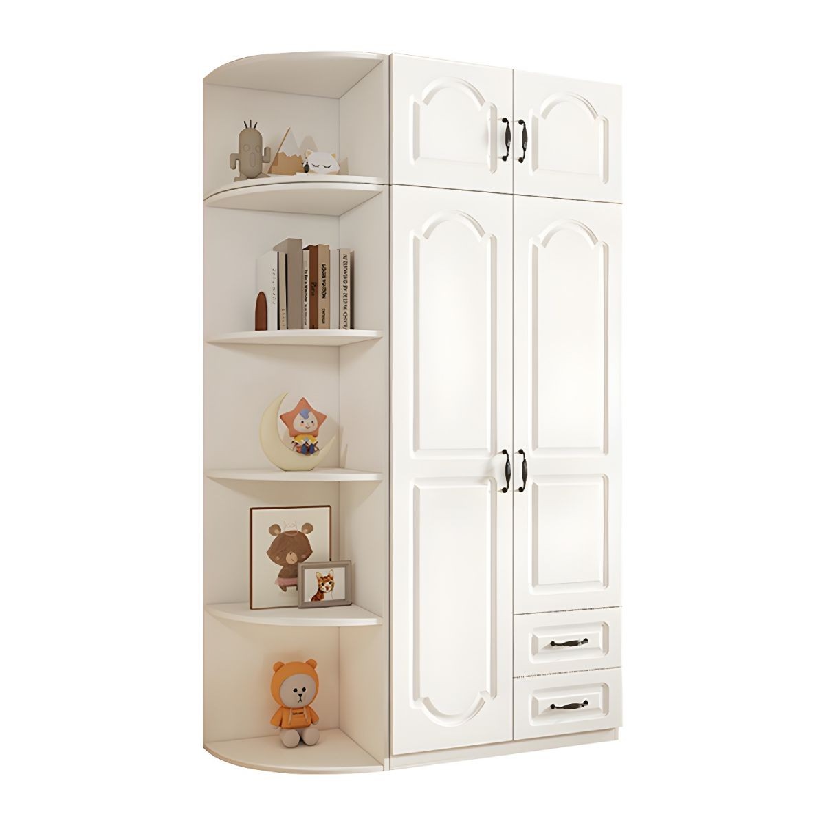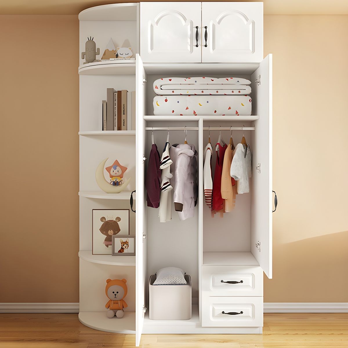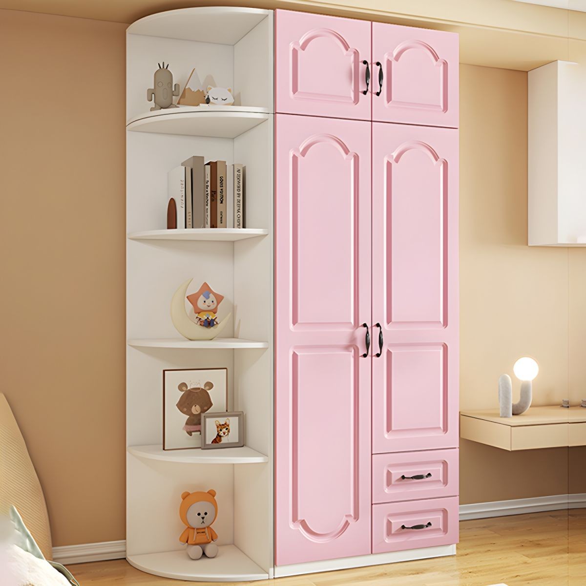 خزانة ملابس للأطفال مصنوعة من أخشاب طبيعية باللون الأبيض أو الوردي مع أرفف وقضيب ملابس وباب بسيط و2 درج