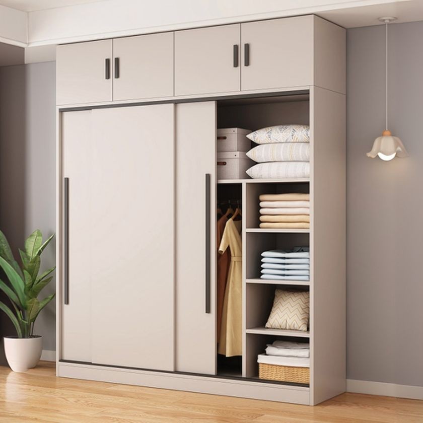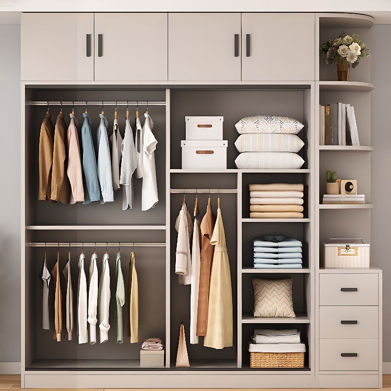 دولاب ملابس أنيق للأطفال مصنوع من الخشب باللون البيج مع رف وقضيب ملابس وباب وأرفف تخزين جانبية، تتميز بمقاسات كبيرة تتسع لتخزين الملابس والأغراض بكل سهولة ويسر .