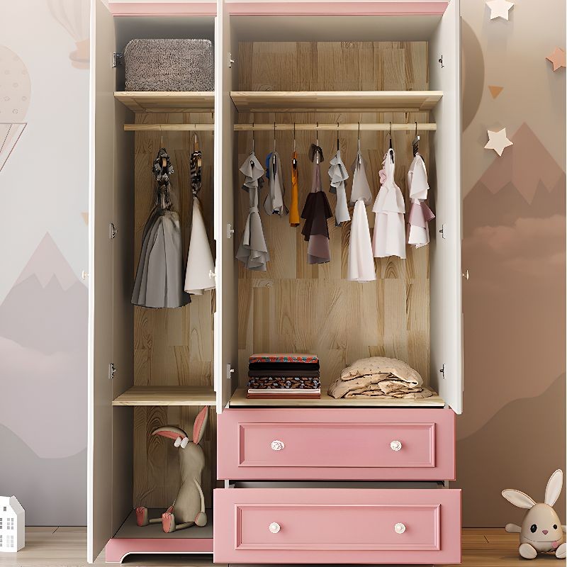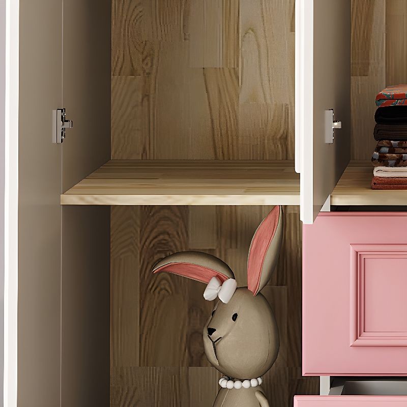 دولاب مثالي لغرف الأطفال بتصميم يجمع بين العملية والجاذبية البصرية. يتميّز بتدرجات اللونين الأبيض والوردي بتوزيع متناسق يضفي لمسة من المرح والنعومة.