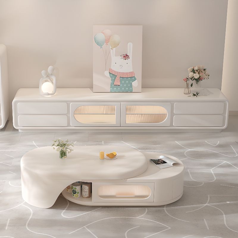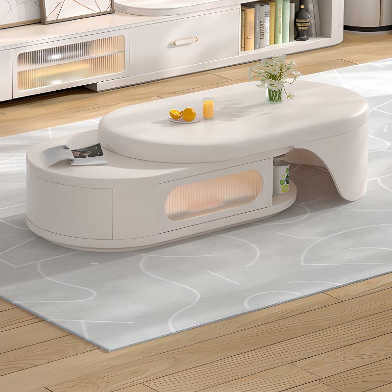 ترابيزة قهوة بيضاوية بتصميم قابل للتمديد وتخزين مدمج – لون بيج فاتح