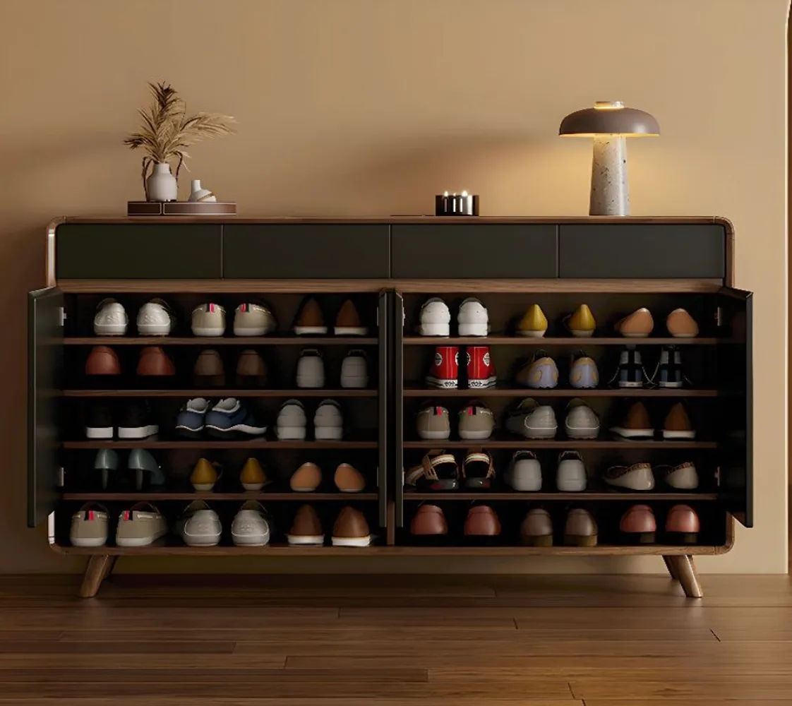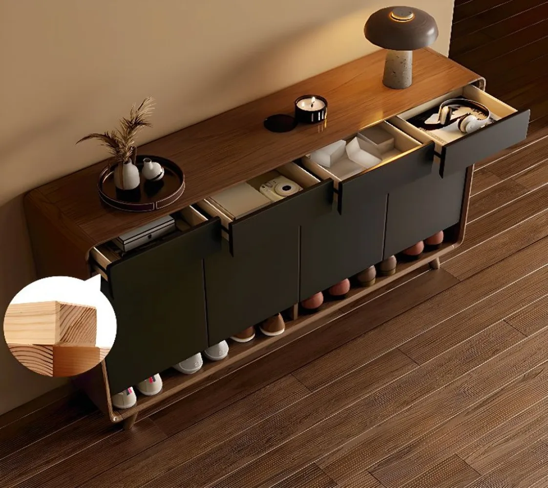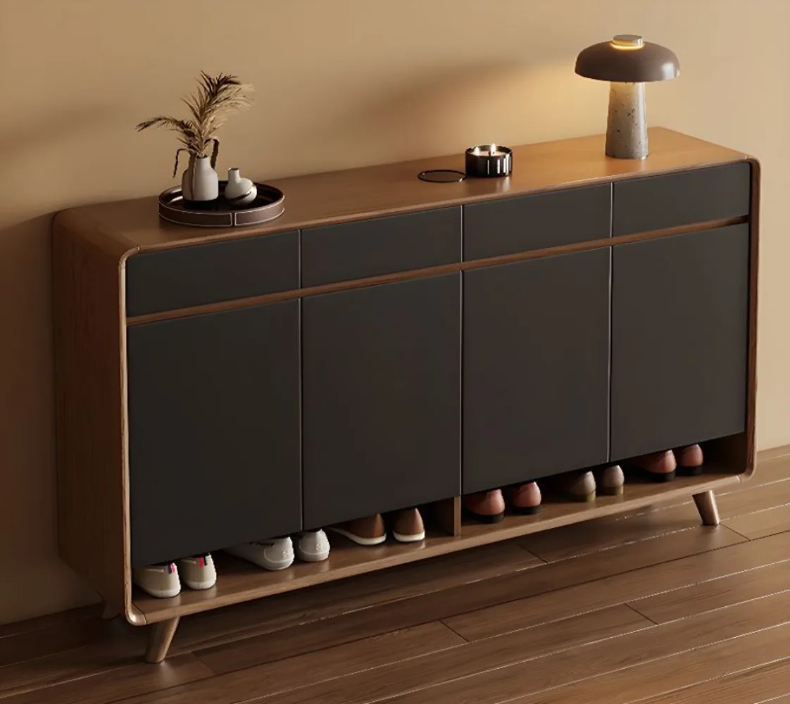 خزانة أحذية حديثة بلون أنيق من اخشاب طبيعية ومساحة تخزين وبوابة وأدراج وظهر مغلق ودعم ذاتي