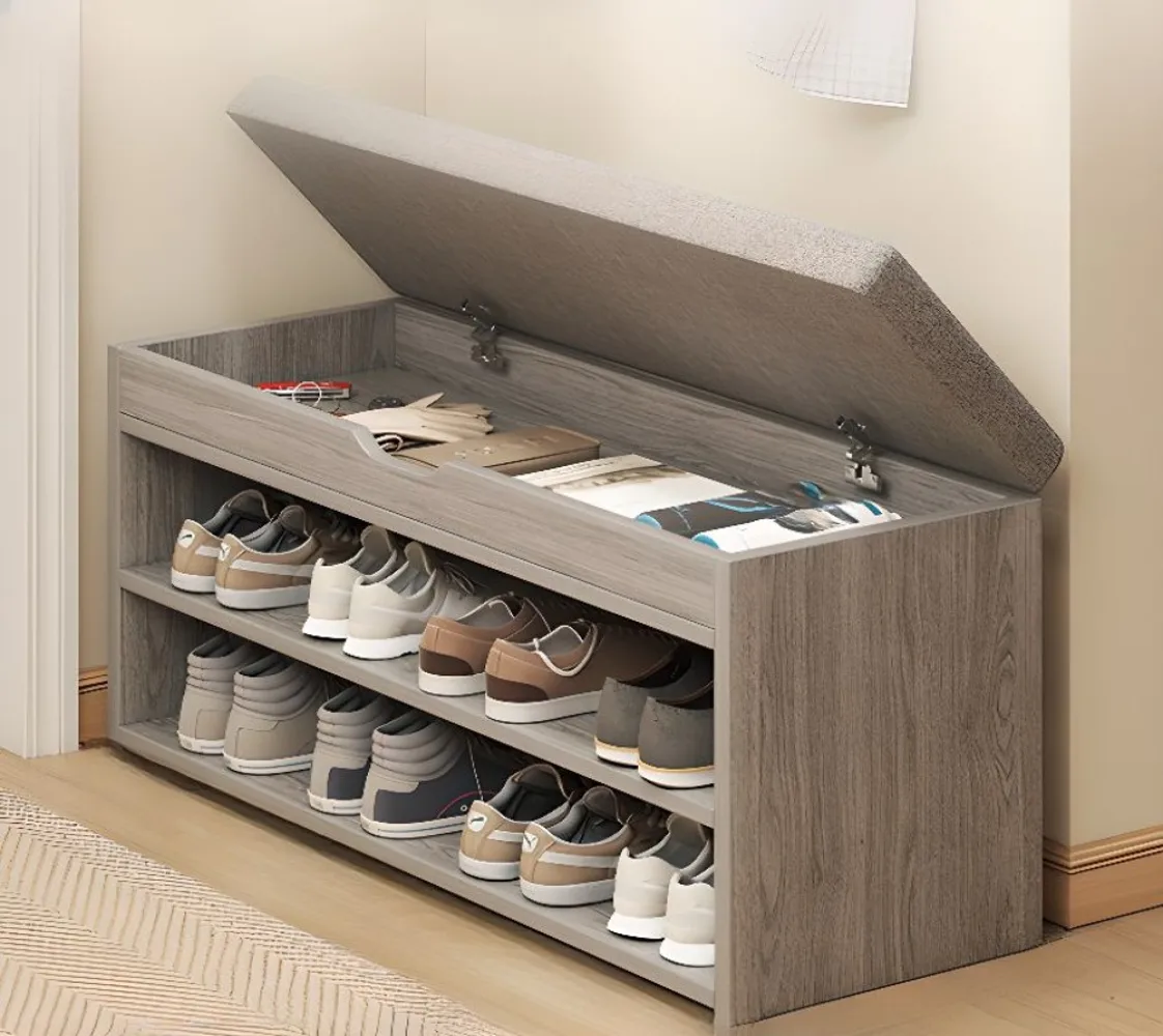 خزانة أحذية حديثة بلون أنيق من اخشاب طبيعية ومساحة تخزين وظهر مغلق ودعم ذاتي