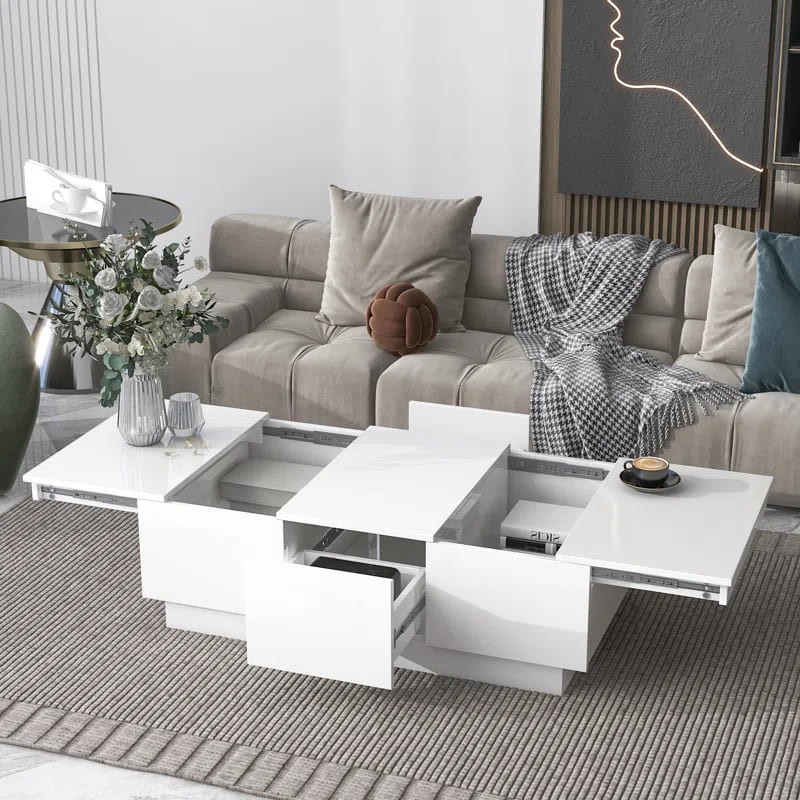 تم تصميم مجموعة طاولات القهوة لتكون ضرورية في العصر الحديث، ومثالية لإضفاء لمسة راقية على أي مساحة. تحتوي علي مساحة تخزينية وأدراج وسطح قابل للحركة.