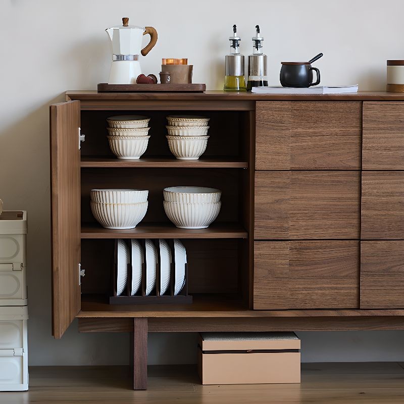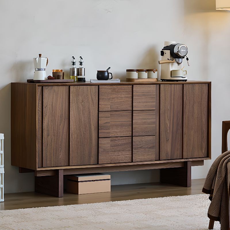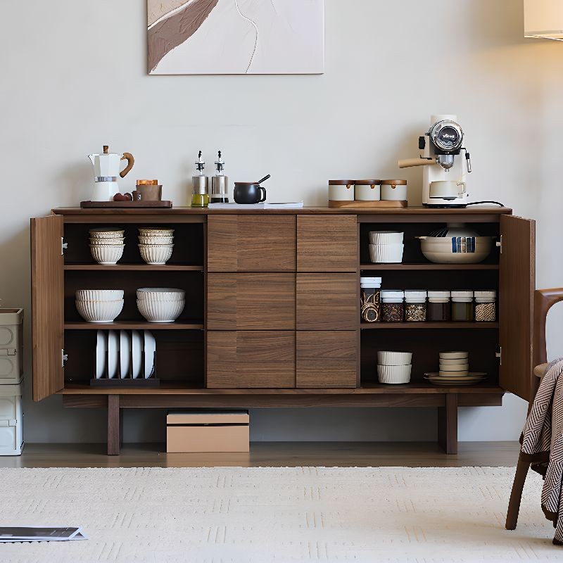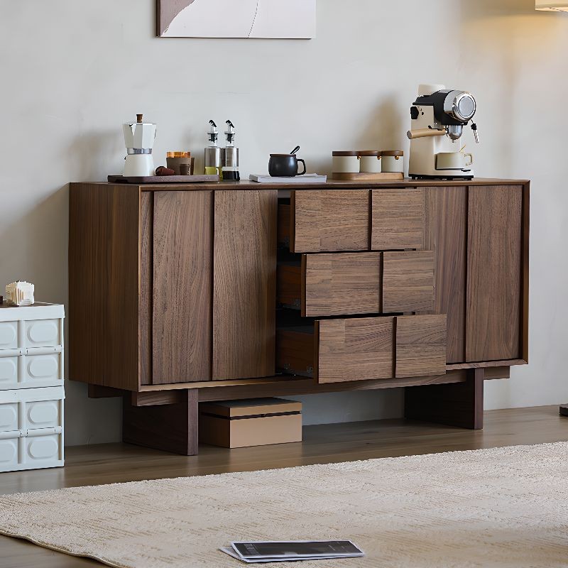 ركن قهوة بأدراج للتخزين بتصميم عصري، مصنوع من خشب طبيعي، يتميز بمظهر أنيق وتخزين فعال.