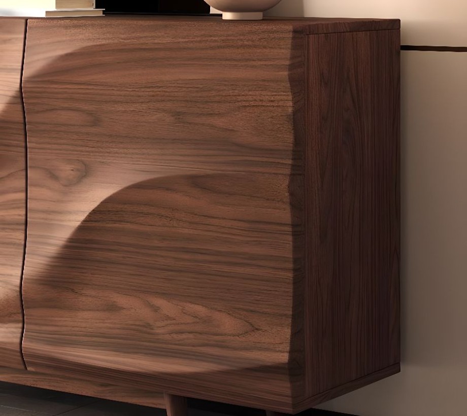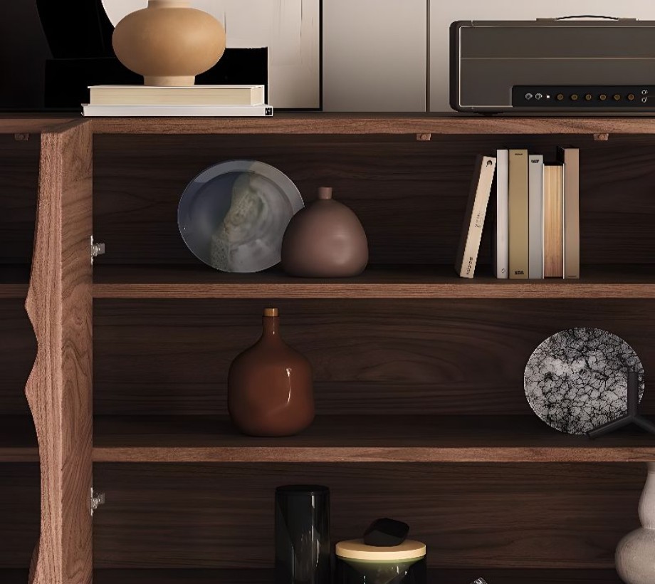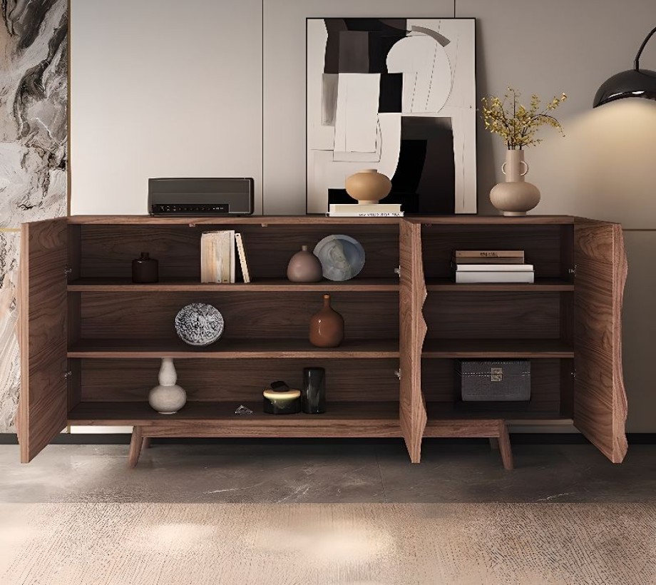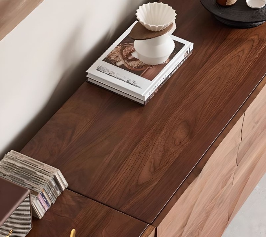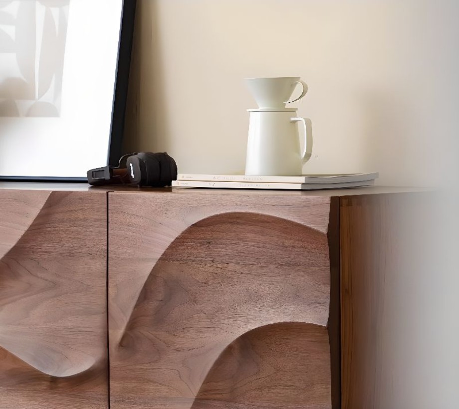 ركن قهوة بأدراج للتخزين بتصميم عصري، مصنوع من خشب طبيعي، يتميز بمظهر أنيق وتخزين فعال.