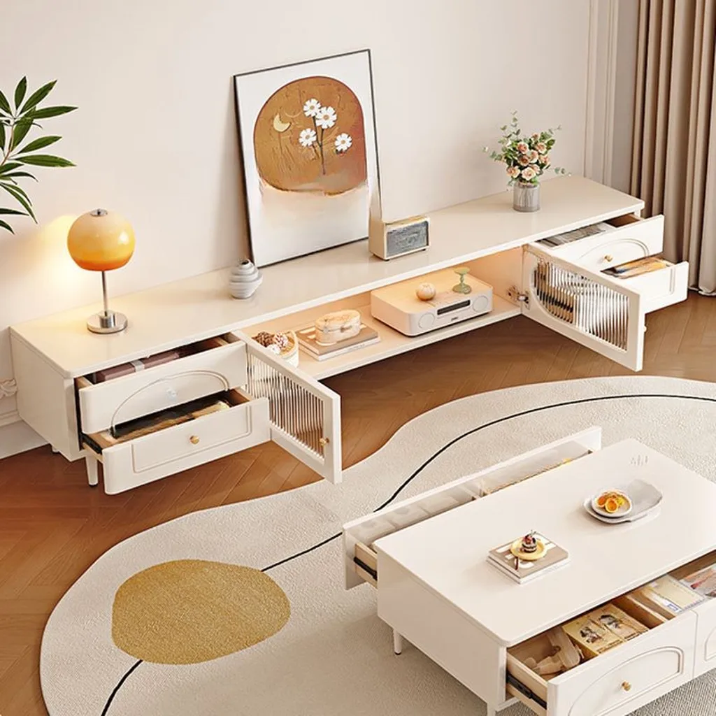 ترابيزة تلفزيون خشبية عصرية مزودة بأدراج وبمساحة تخزين مميزة، مصنوعة من الخشب الطبيعي، أنيقة وعملية، وتلبي احتياجاتك في ترتيب وتنظيم منزلك بشكل مثالي .