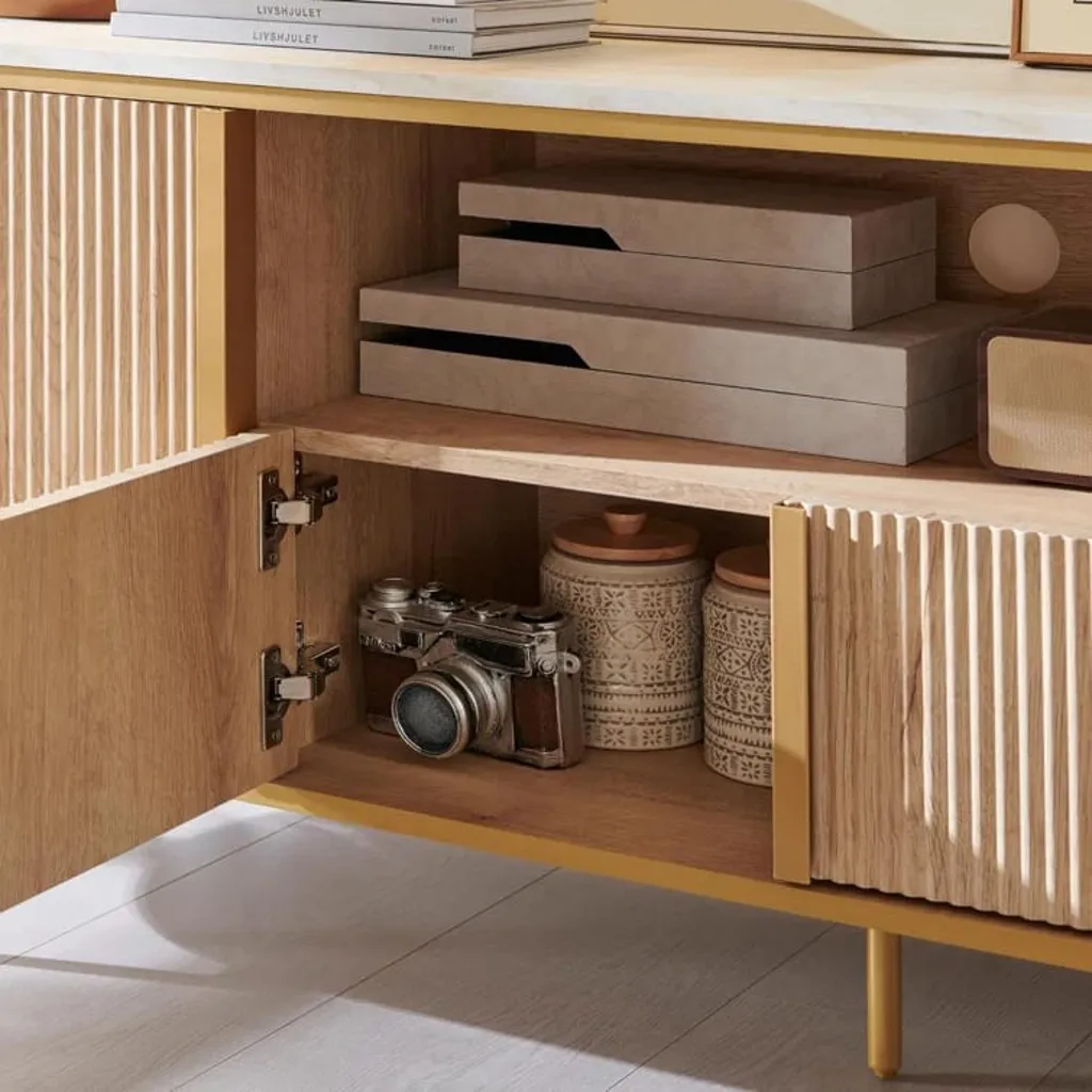 ترابيزة تلفزيون خشبية عصرية مزودة بمساحة تخزين مميزة، مصنوعة من الخشب الطبيعي، أنيقة وعملية، وتلبي احتياجاتك في ترتيب وتنظيم منزلك بشكل مثالي .