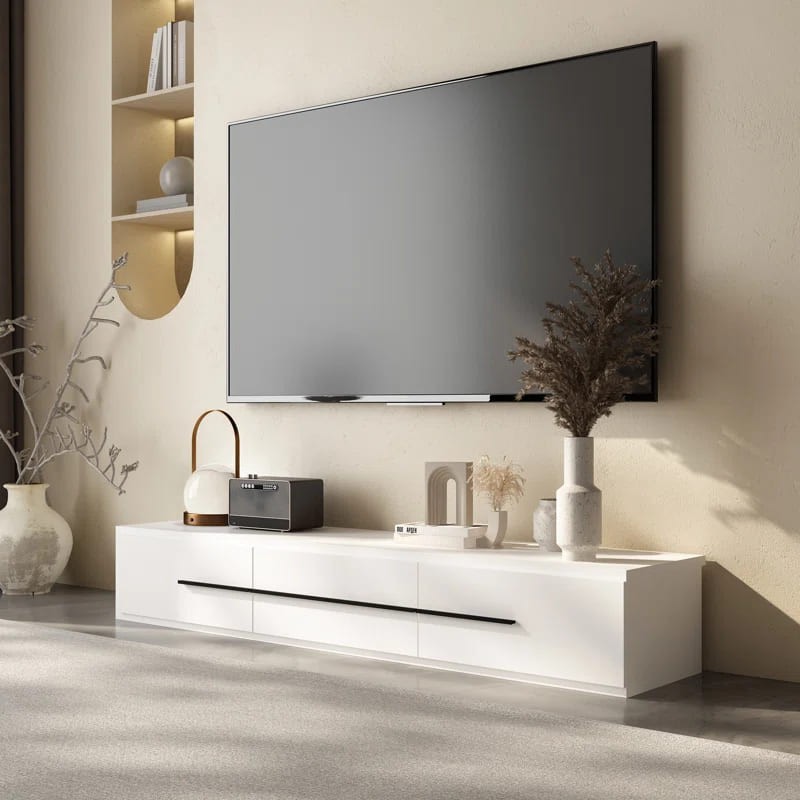 ترابيزة تلفزيون خشبية عصرية مزودة بأدراج لمساحة تخزين مميزة، مصنوعة من الخشب الطبيعي، أنيقة وعملية، وتلبي احتياجاتك في ترتيب وتنظيم منزلك بشكل مثالي .