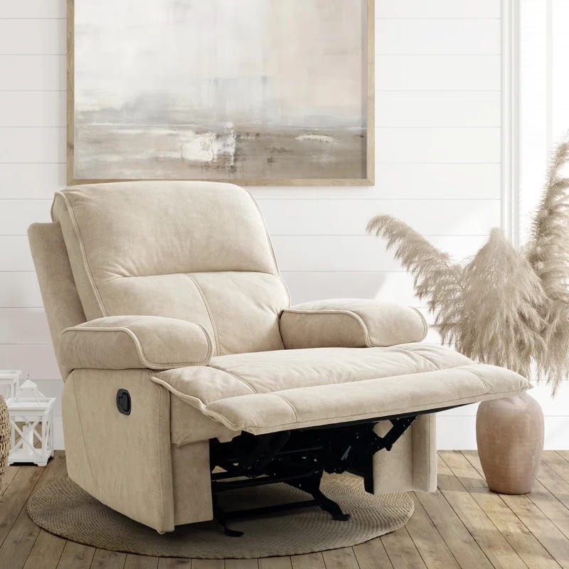 فوتيه ليزى بوى أنيق و مثالي للإسترخاء مصنوع من نسيج ناعم ومريح وخشب زان عالي الجودة بألوان محايدة ليتناسب تمامًا مع مساحتك لإضافة مظهر عصري