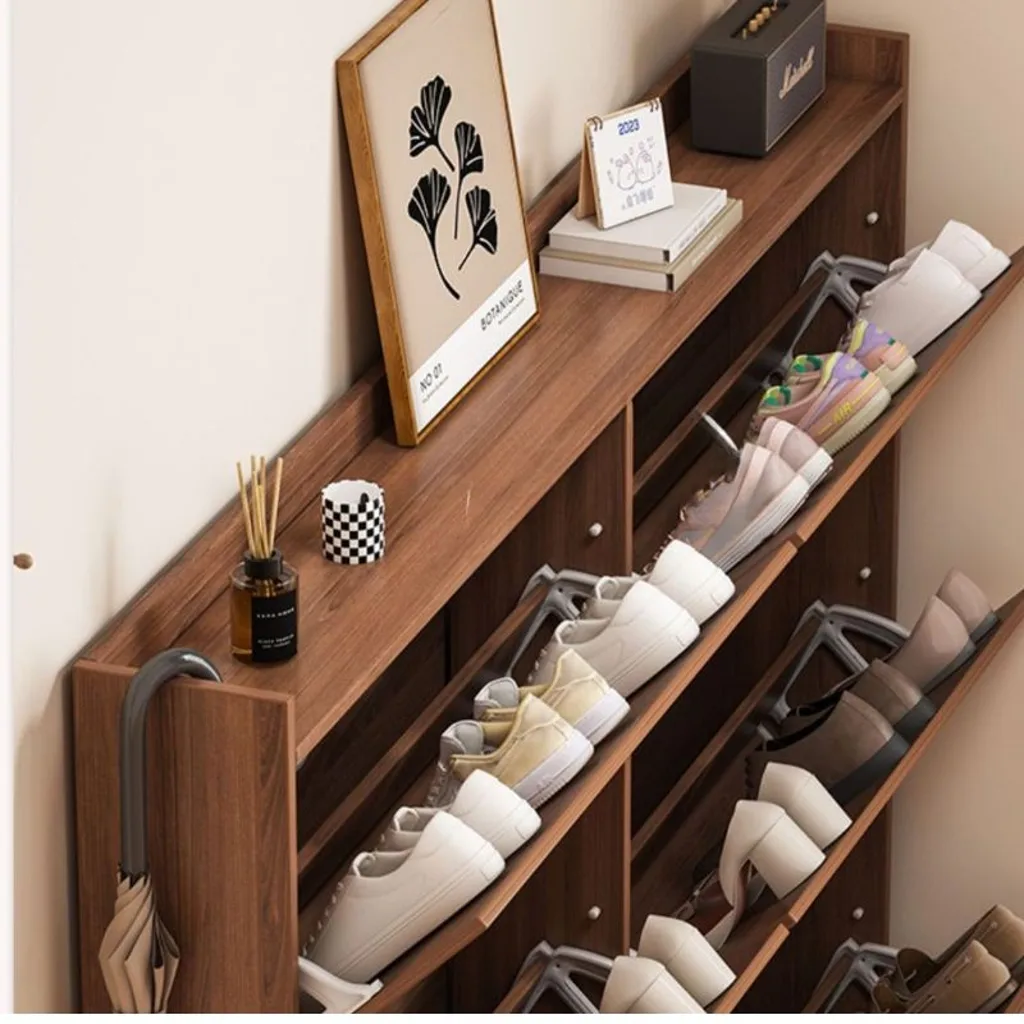 خزانة أحذية حديثة بلون أنيق من اخشاب طبيعية بها مساحة تخزين وظهر مغلق ودعم ذاتي المقاس : العرض 120 سم *العمق20 سم * الارتفاع 120 سم الخامة: اخشاب طبيعية + ميكانيزم اللون: خشبي النوع : مودرن