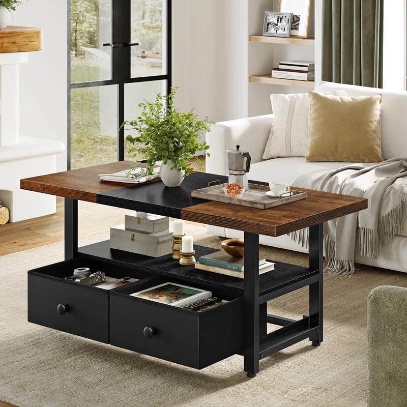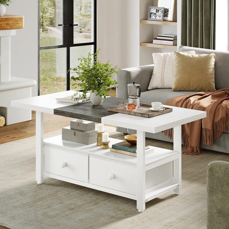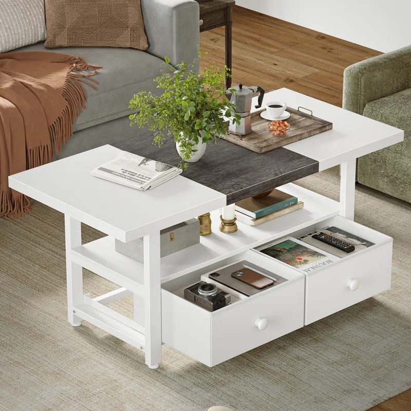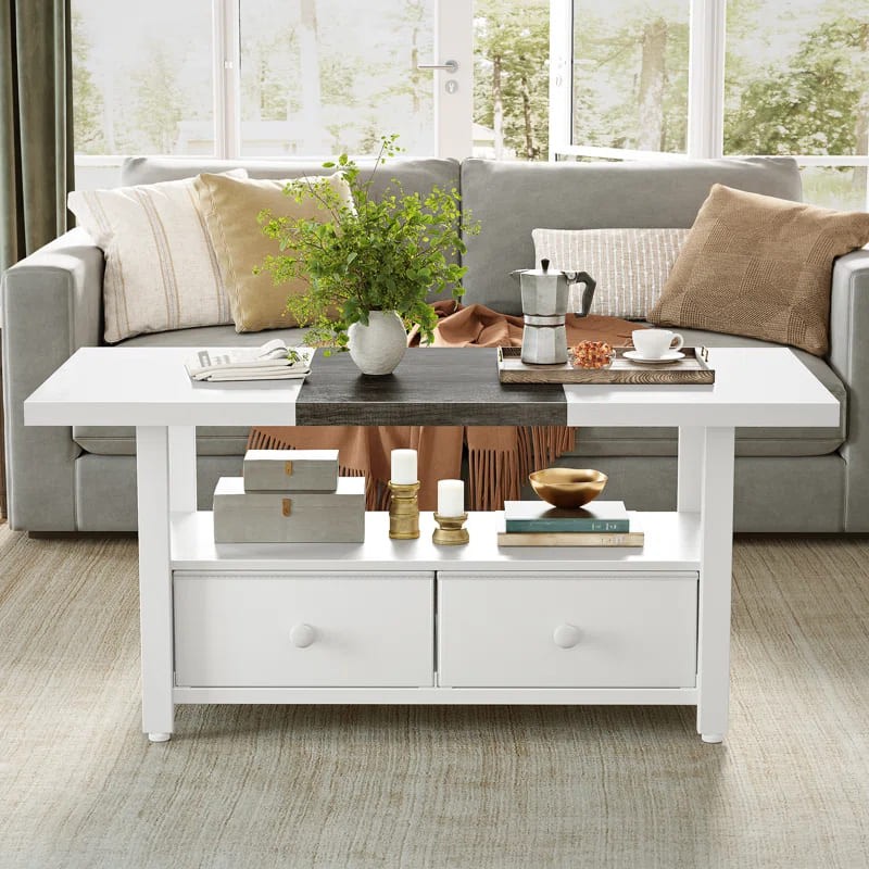 تم تصميم مجموعة طاولات القهوة لتكون ضرورية في العصر الحديث، ومثالية لإضفاء لمسة راقية على أي مساحة. طاولة قهوة بها مساحة تخزينية ودرجين.