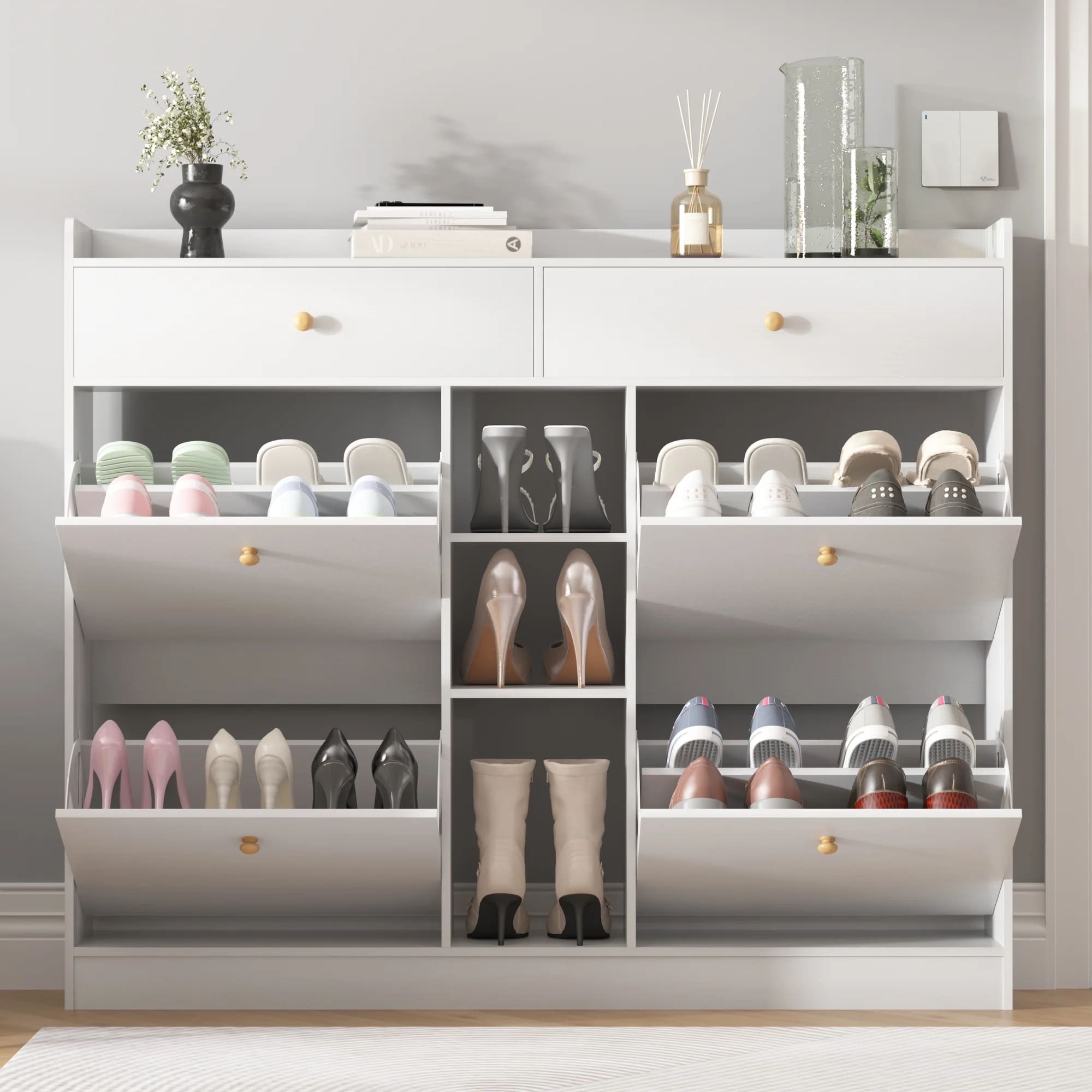 خزانة أحذية حديثة بلون أنيق من اخشاب طبيعية بها مساحة تخزين وأدراج وظهر مغلق ودعم ذاتي المقاس : العرض 130 سم *العمق 25 سم * الارتفاع 110 سم الخامة: اخشاب طبيعية اللون: أبيض النوع : مودرن