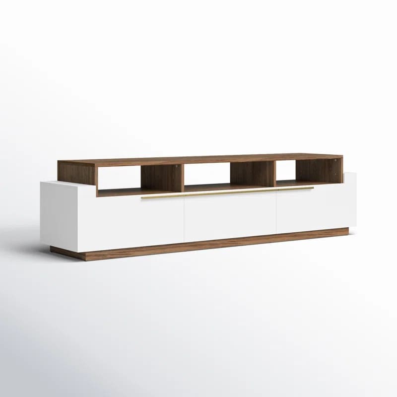 ترابيزة تلفزيون خشبية عصرية مزودة بأدراج ومساحة تخزين مميزة، مصنوعة من الخشب الطبيعي، أنيقة وعملية، وتلبي احتياجاتك في ترتيب وتنظيم منزلك بشكل مثالي .