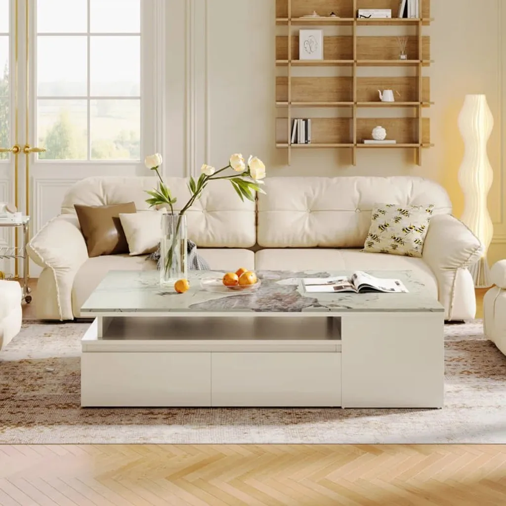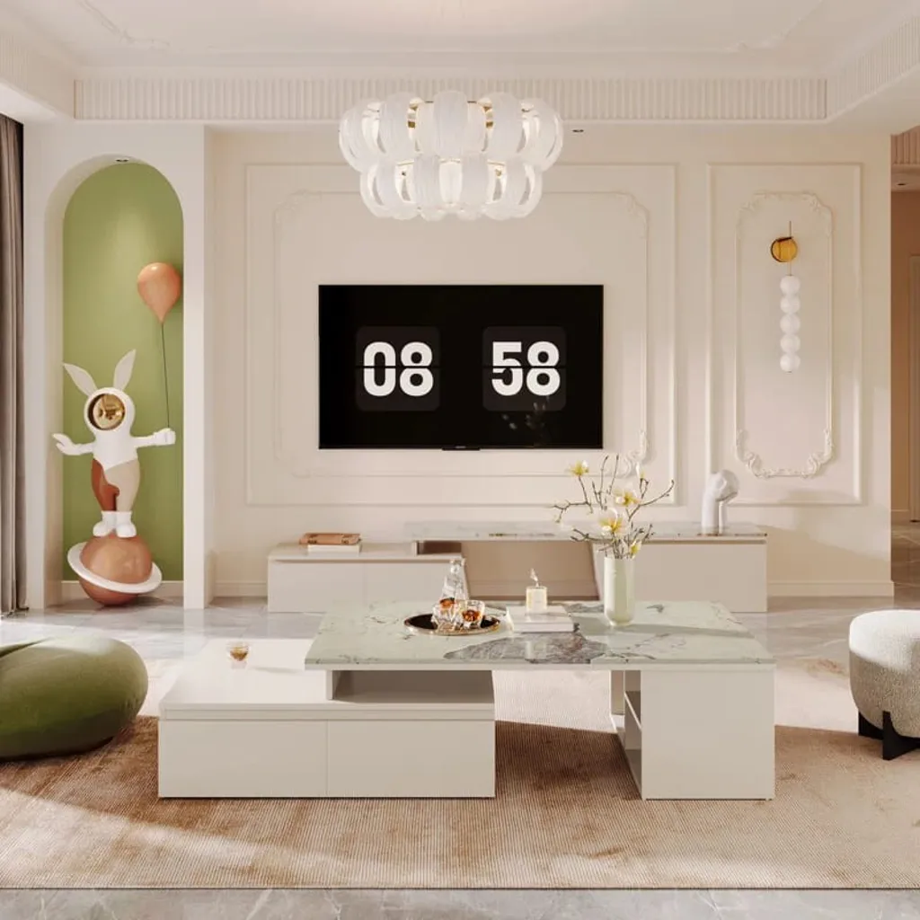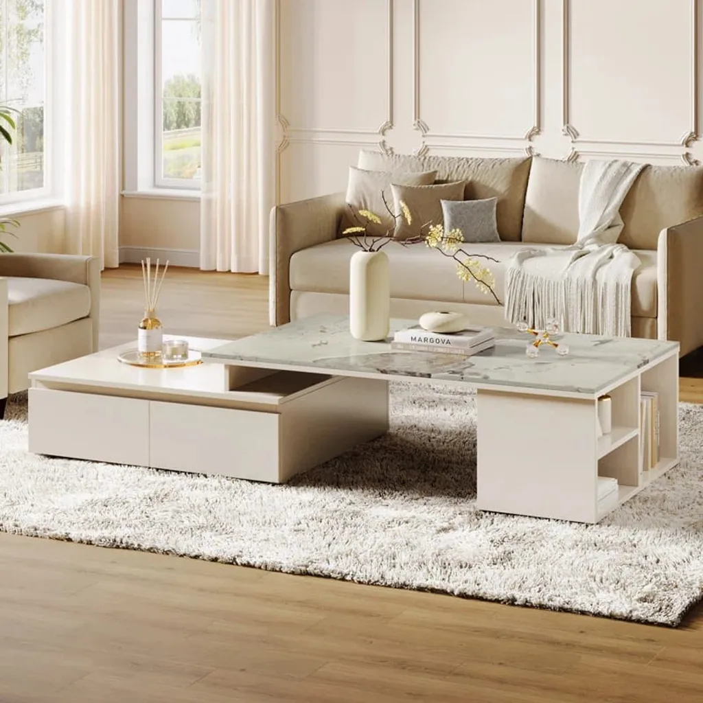 تم تصميم مجموعة طاولات القهوة لتكون ضرورية في العصر الحديث، ومثالية لإضفاء لمسة راقية على أي مساحة. طاولة قهوة قابلة للتمدد وبها أدراج وأرفف لمساحة تخزينية مميزة.