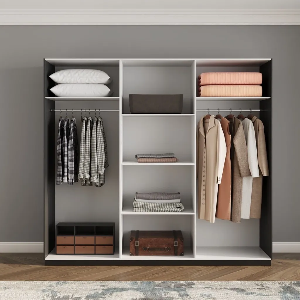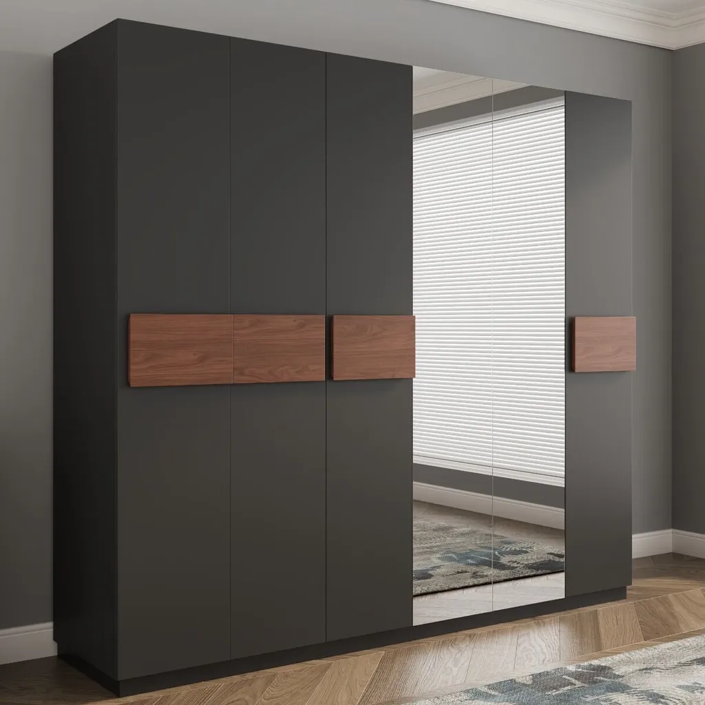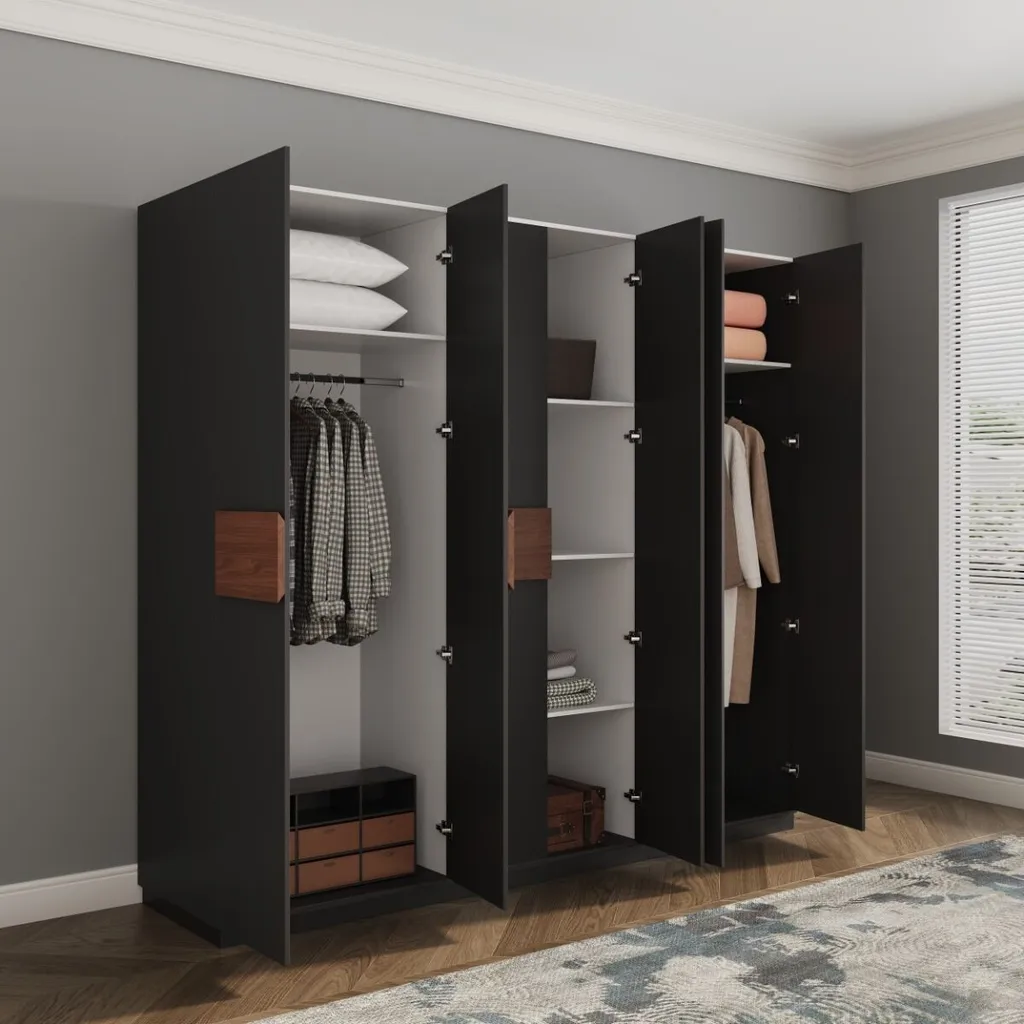 دولاب ملابس أنيق مصنوع من الخشب الطبيعي يتكون من 6 أبواب مع أرفف وقضيب ملابس، تتميز بمقاسات كبيرة تتسع لتخزين الملابس والأغراض بكل سهولة ويسر .