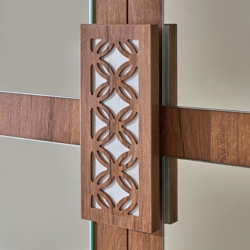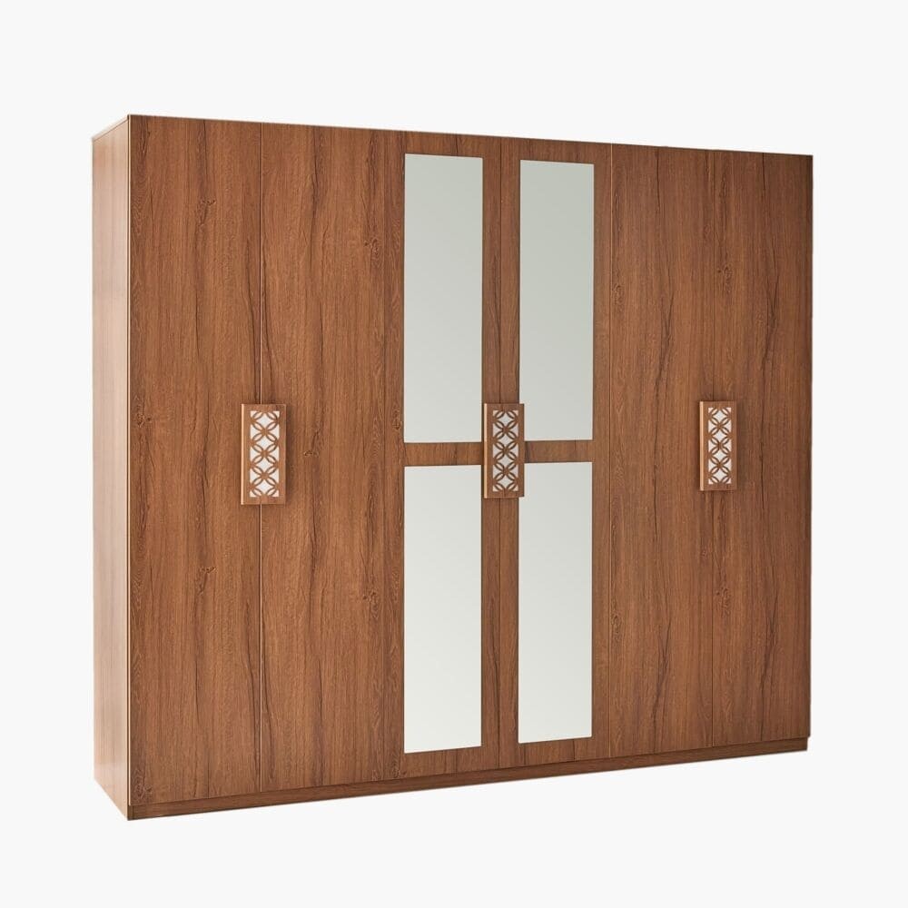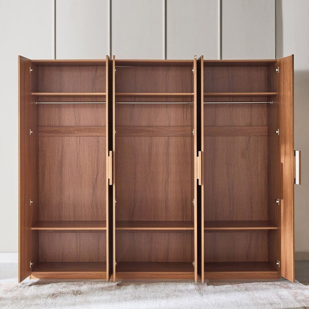 دولاب ملابس أنيق مصنوع من الخشب الطبيعي يتكون من 6 أبواب مع أرفف وقضيب ملابس وادراج ومرآة، تتميز بمقاسات كبيرة تتسع لتخزين الملابس والأغراض بكل سهولة ويسر .