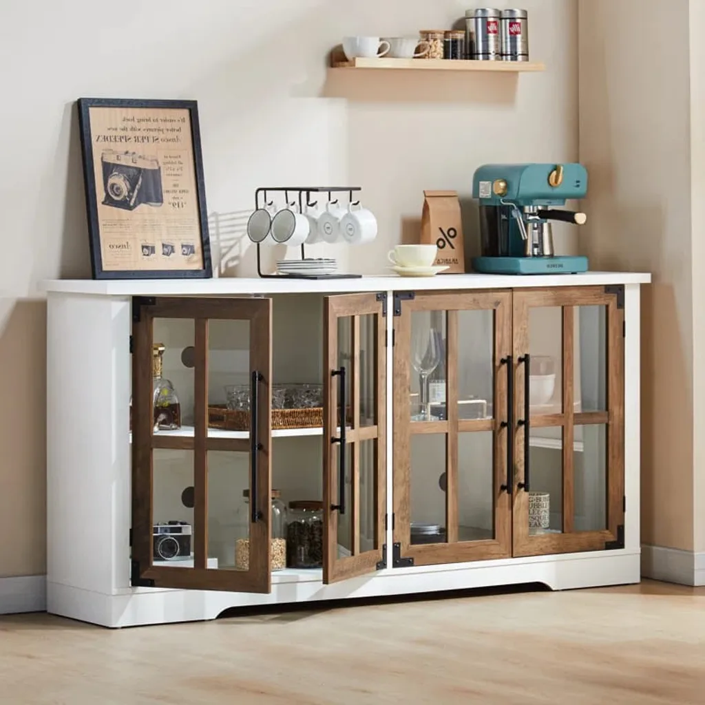 ركن قهوة بتصميم عصري، مصنوع من خشب طبيعي، يتميز بمظهر أنيق وتخزين فعال.