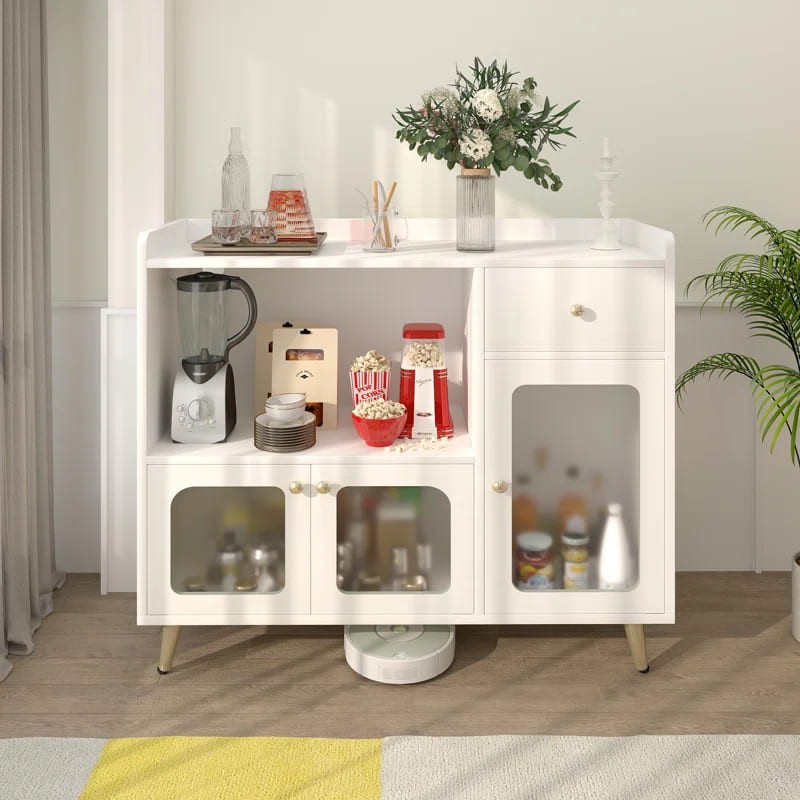 ركن قهوة بمساحة للتخزين بتصميم عصري، مصنوع من خشب طبيعي، يتميز بمظهر أنيق وتخزين فعال.