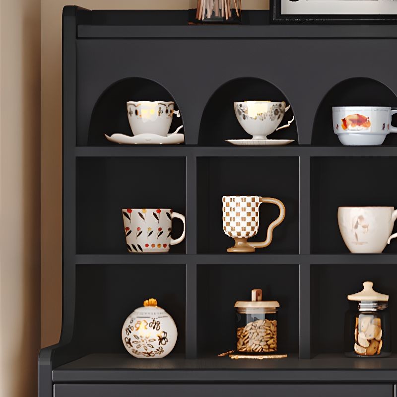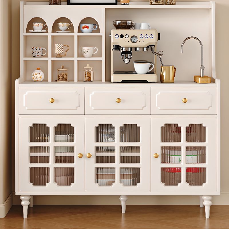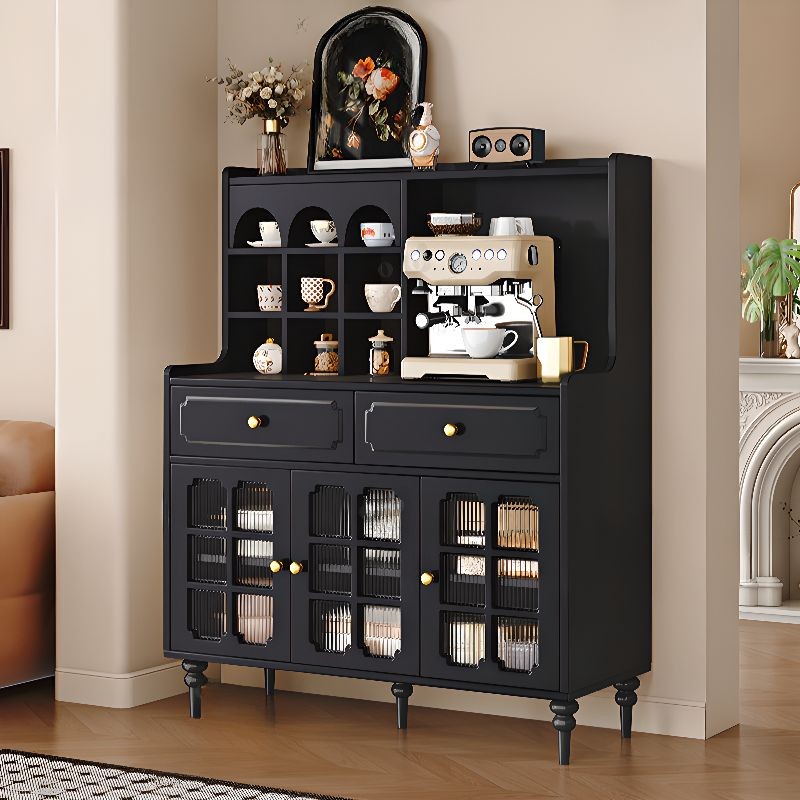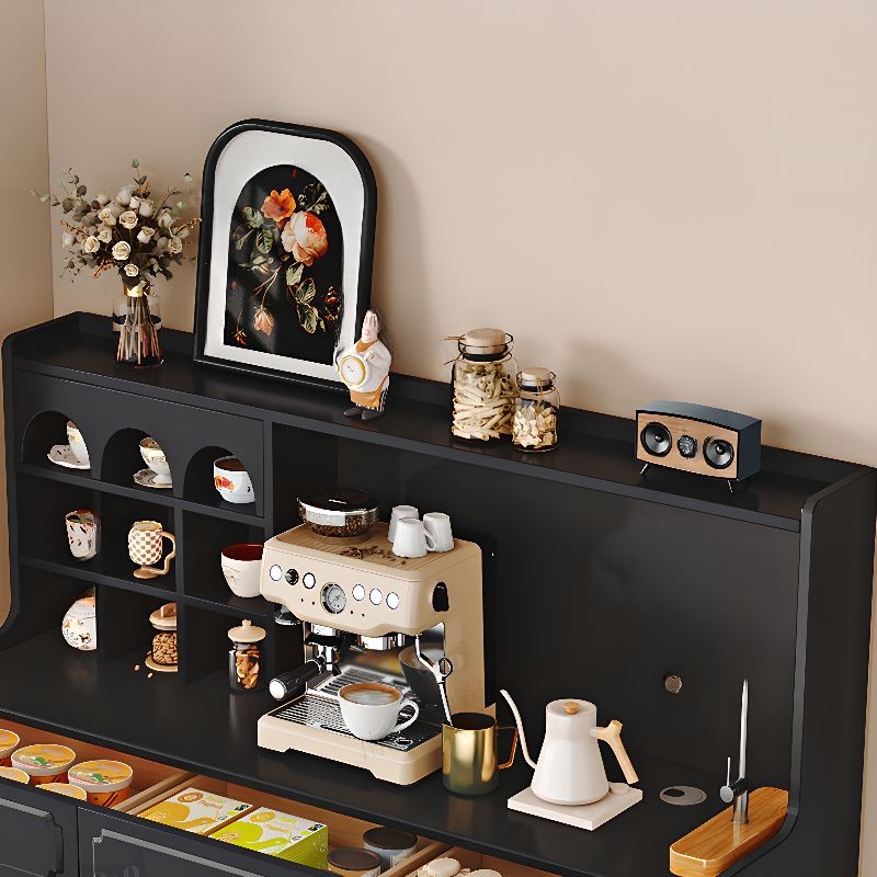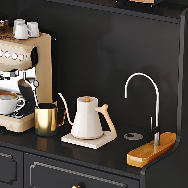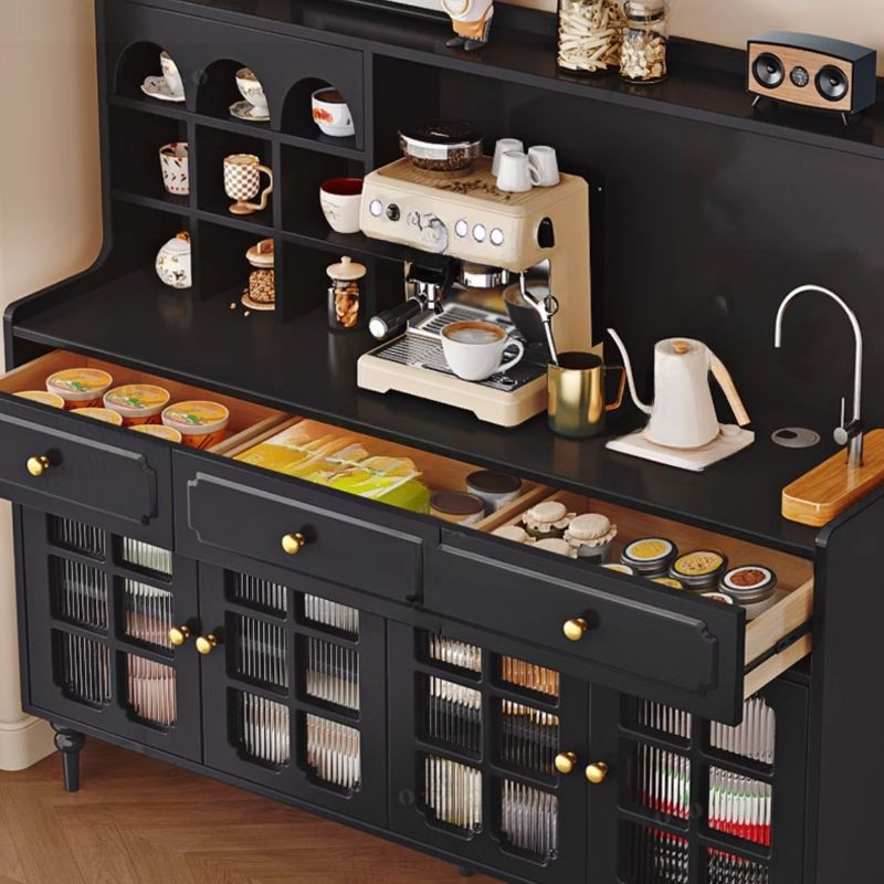 ركن قهوة بأدراج للتخزين بتصميم عصري، مصنوع من خشب طبيعي، يتميز بمظهر أنيق وتخزين فعال.