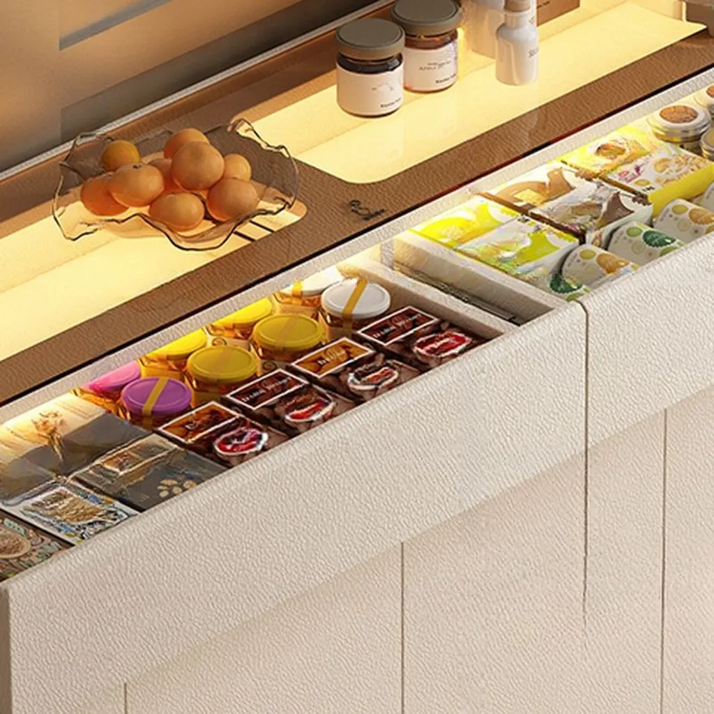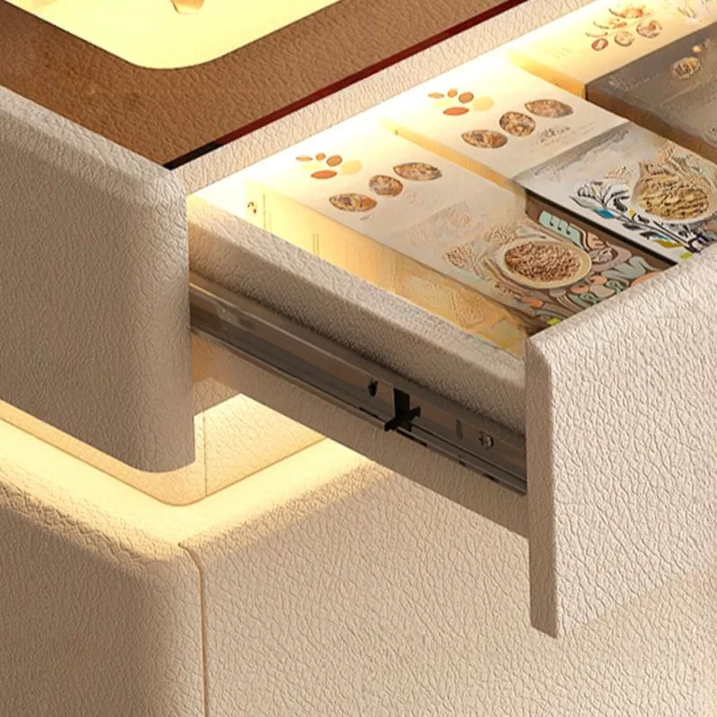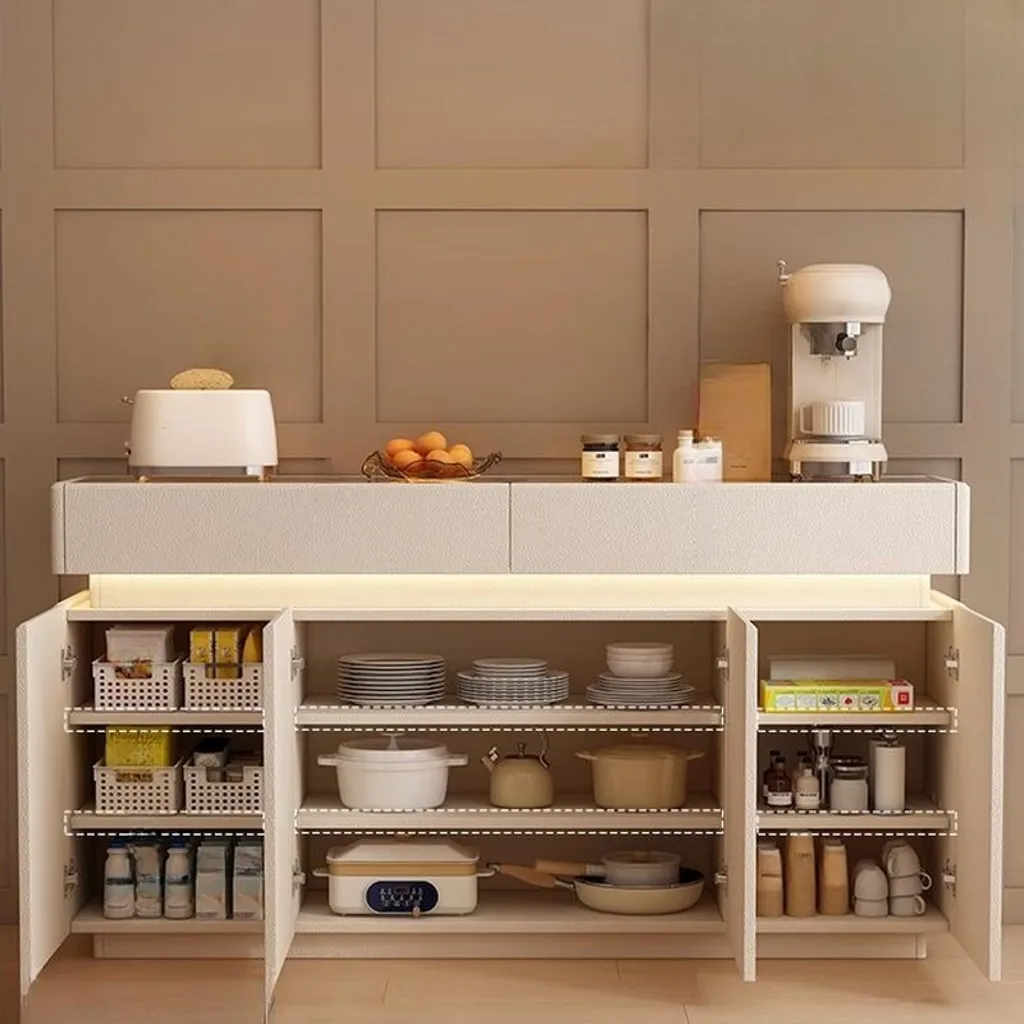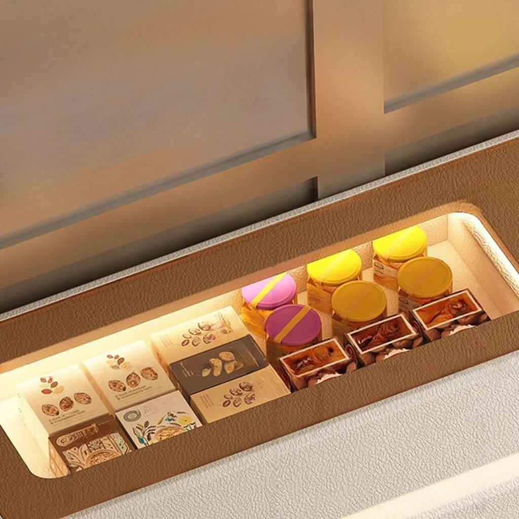 ركن قهوة بأدراج للتخزين بتصميم عصري، مصنوع من خشب طبيعي، يتميز بمظهر أنيق وتخزين فعال.