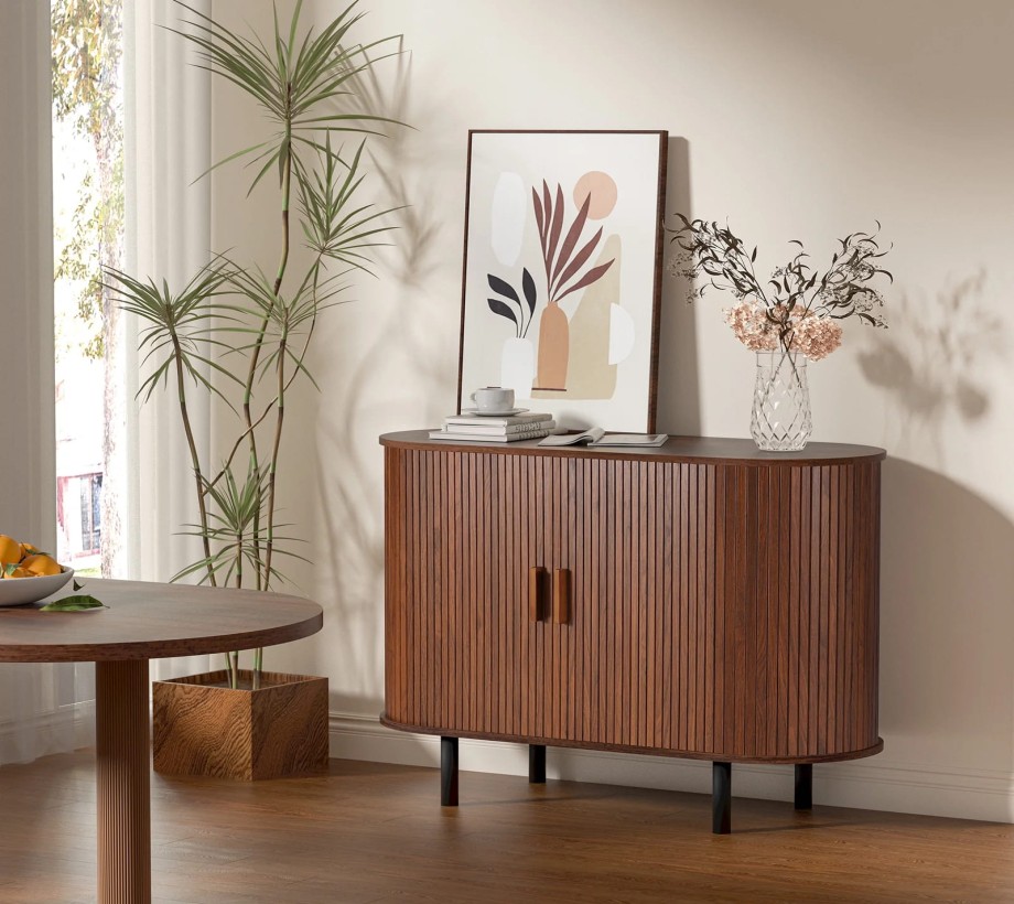 ركن قهوة بمساحة للتخزين بتصميم عصري، مصنوع من خشب طبيعي، يتميز بمظهر أنيق وتخزين فعال.