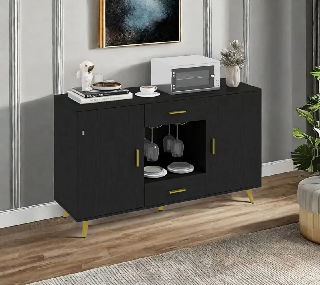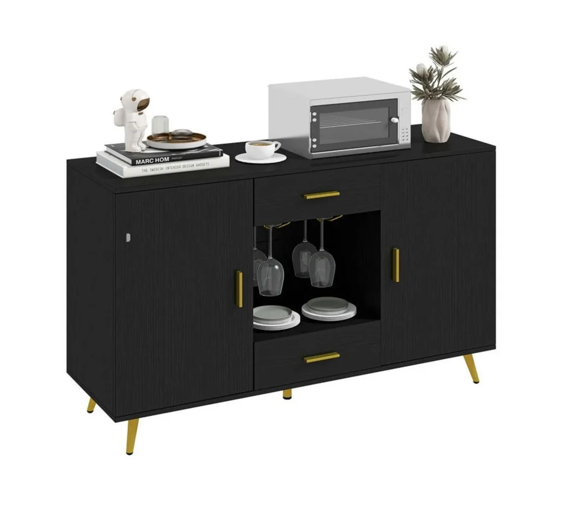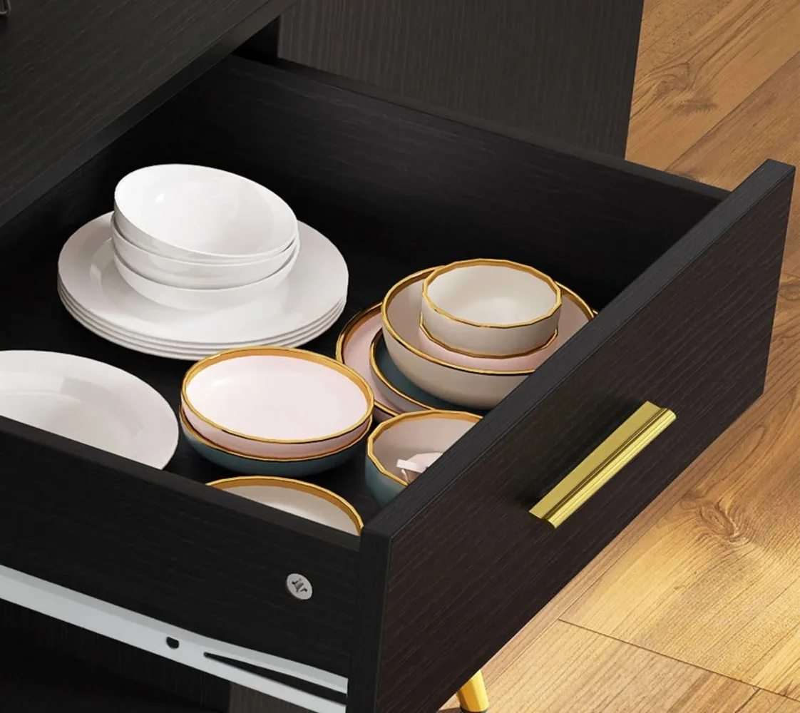 ركن قهوة بأدراج للتخزين بتصميم عصري، مصنوع من خشب طبيعي، يتميز بمظهر أنيق وتخزين فعال.