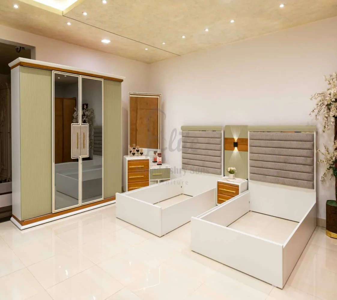غرفة نوم أطفال مودرن بتصميم عصري وأنيق، توفر لطفلك بيئة هادئة ومريحة. الغرفة تتكون من: