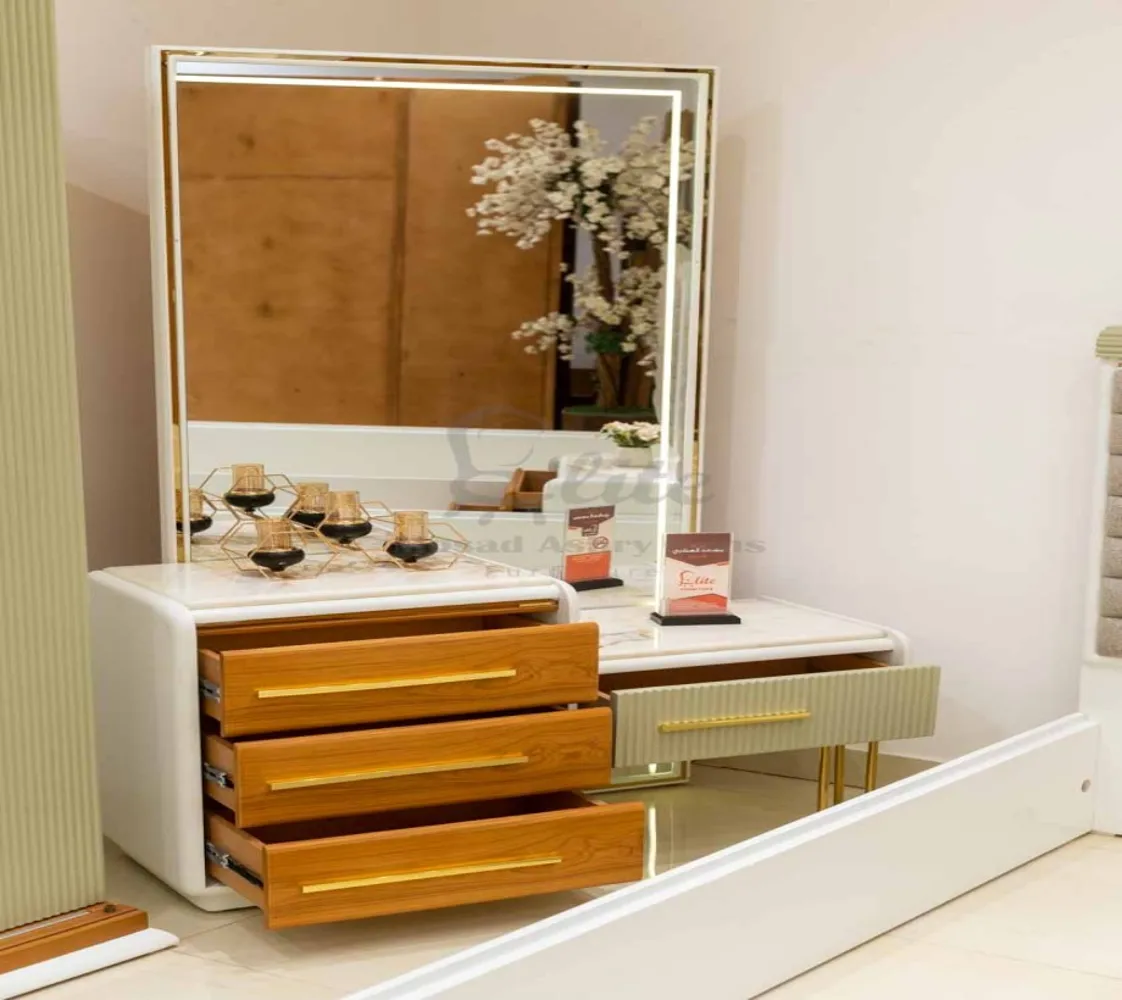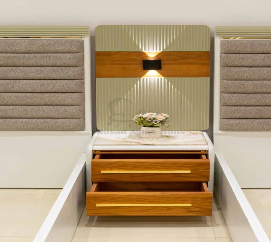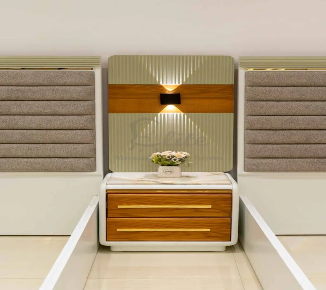 الخامة: أخشاب طبيعية عالية الجودة مع قماش قطيفة فاخر. الألوان: أوف وايت + بيج + هافان، لإضفاء جو هادئ وأنيق يناسب غرف الأطفال.