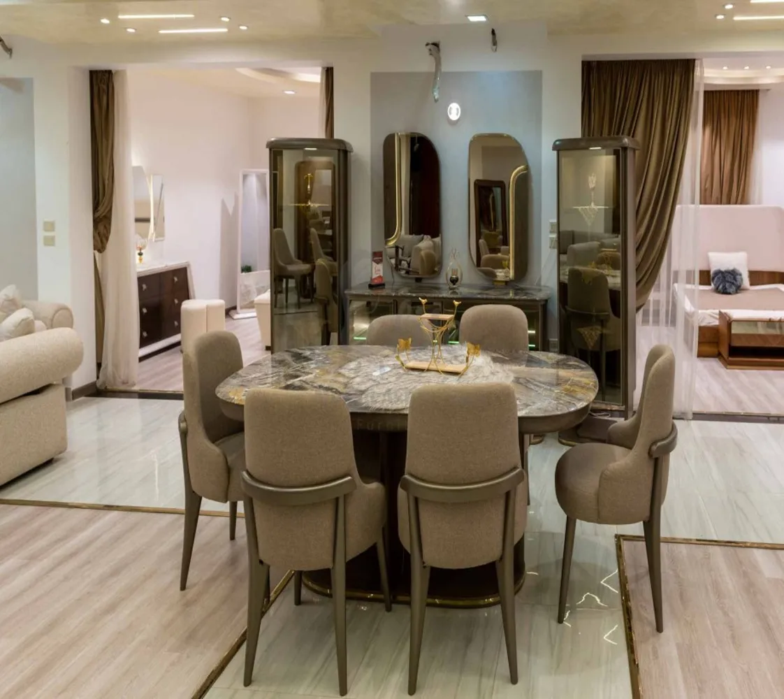 اجعل لحظات الطعام أكثر تميزًا مع غرفة السفرة المودرن الفاخرة، المصممة لعشاق الفخامة والرقي، بلمسات عصرية تضمن لك الراحة والجمال في آنٍ واحد.