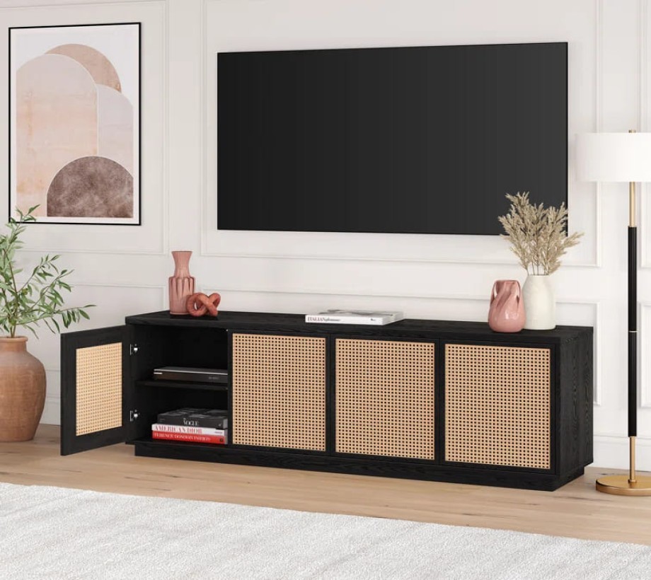 ترابيزة تلفاز أنيقة ومصممة بعناية بأبعاد 175 سم طول × 40 سم عرض × 60 سم ارتفاع، مما يجعلها خيارًا مثاليًا لأي غرفة معيشة. تأتي بلونين جذابين: الأسود الكلاسيكي أو البني الأنيق، مع أربعة أبواب مصنوعة من الروطان الطبيعي باللون البيج أو الأسود. تتميز هذه الترابيزة بتصميم عصري يجمع بين الجمال والعملية، حيث توفر مساحة تخزين واسعة ومنظمة للأجهزة والملحقات. تضيف اللمسة الطبيعية والروطان المستخدم في التصنيع لمسة من الدفء والراحة، مما يجعلها تناسب جميع الأنماط العصرية للديكور الداخلي. تصميم بسيط وأنيق يناسب مختلف الأذواق ويعزز من جمالية المساحات.