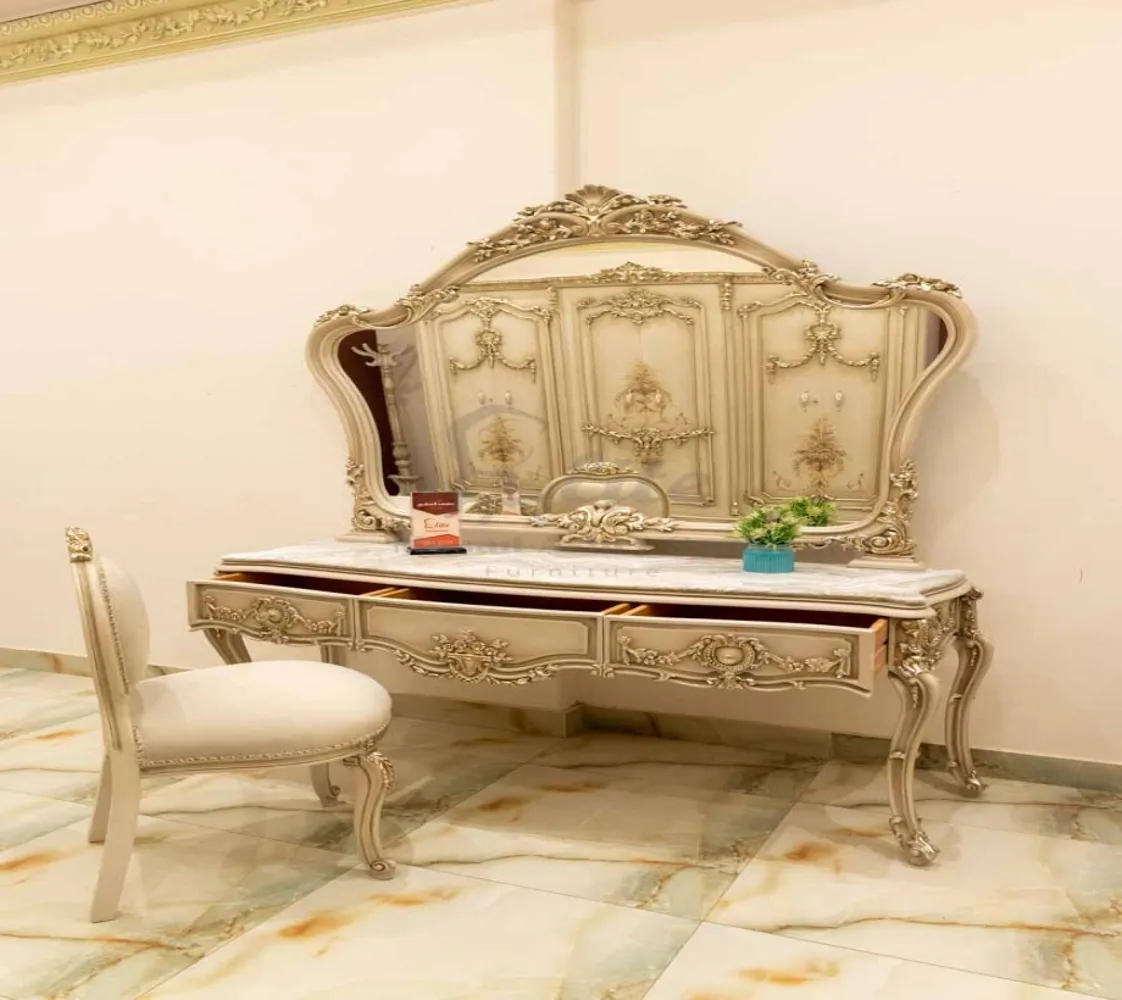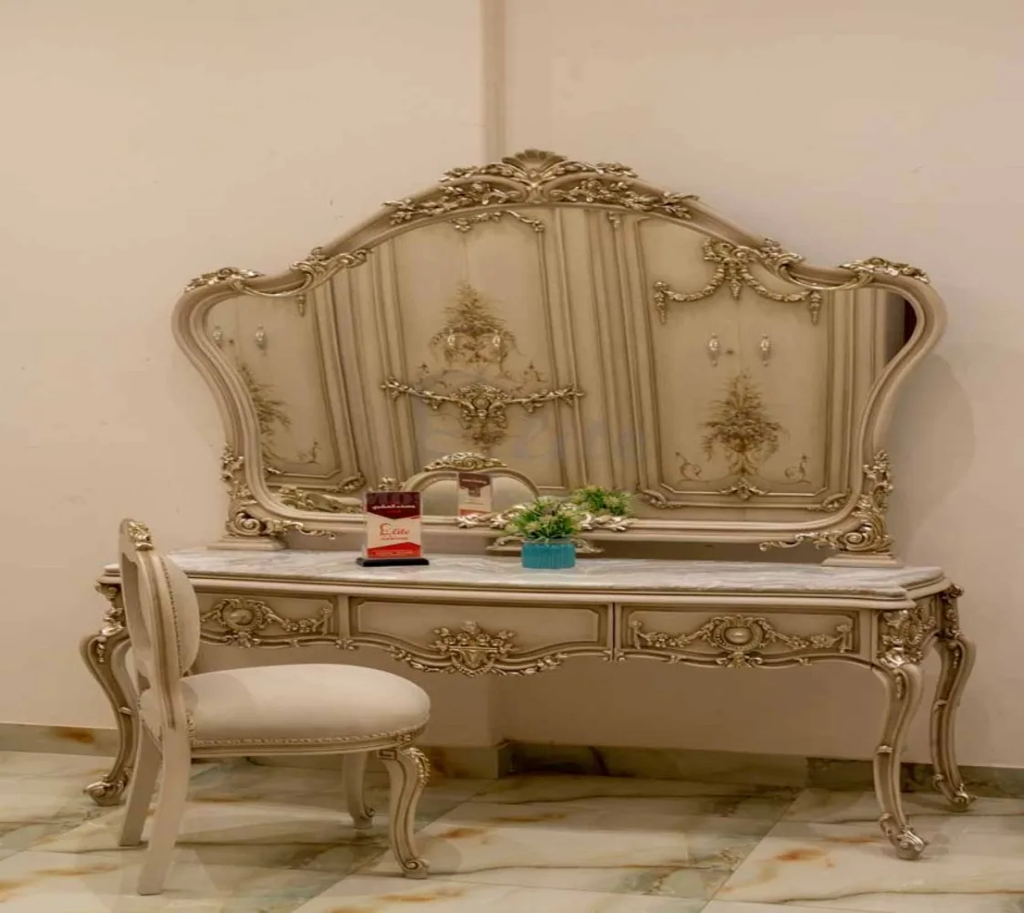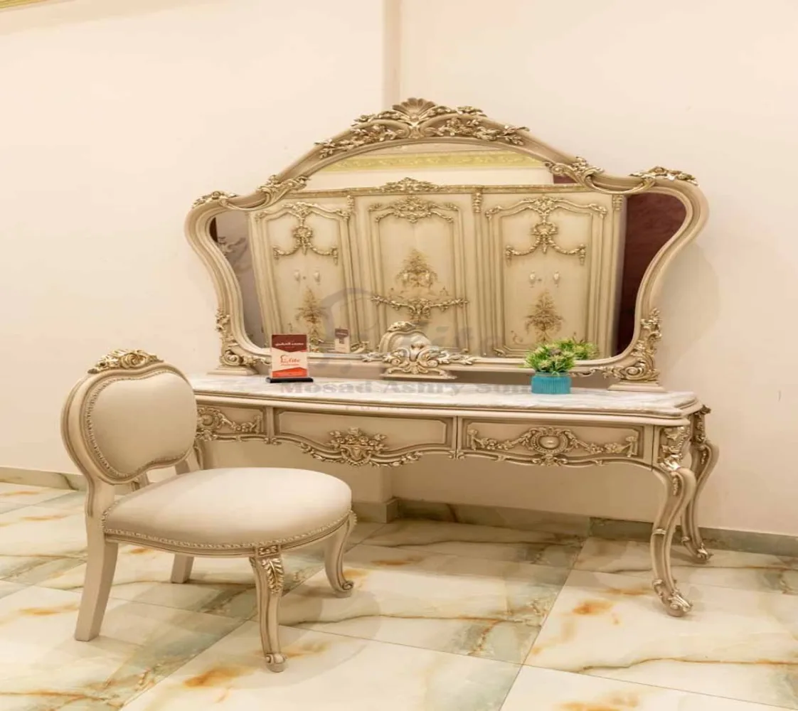 سرير . دولاب . تسريحة . كرسى تسريحة كلاسيك . 2 كومود . شماعة ملابس
