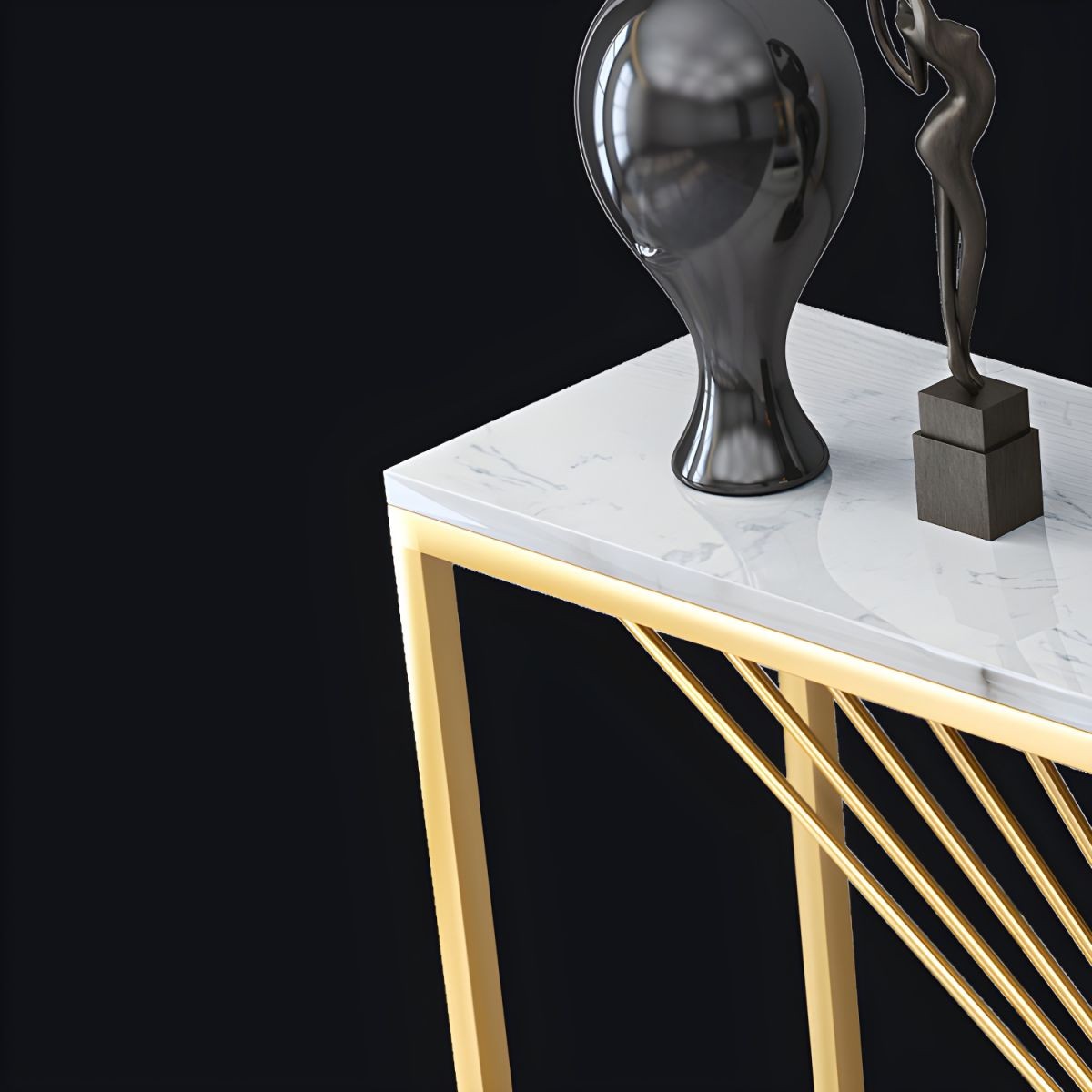 كونسول أنيق وعصري – سطح رخامي وإطار معدني ذهبي بتصميم هندسي مميز