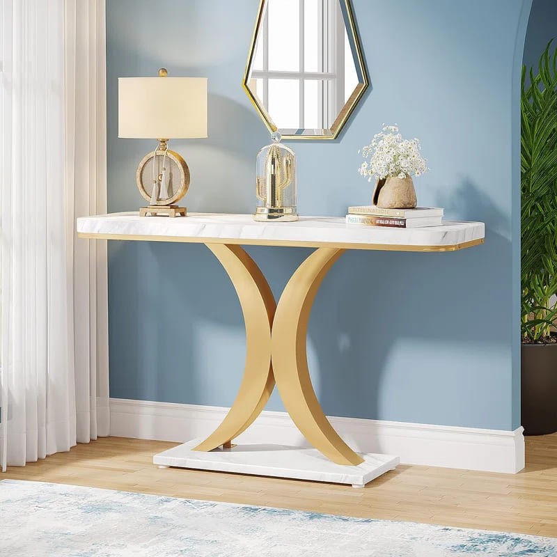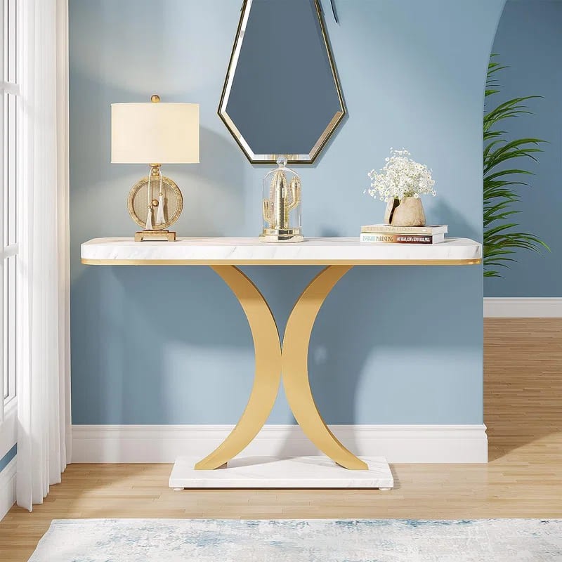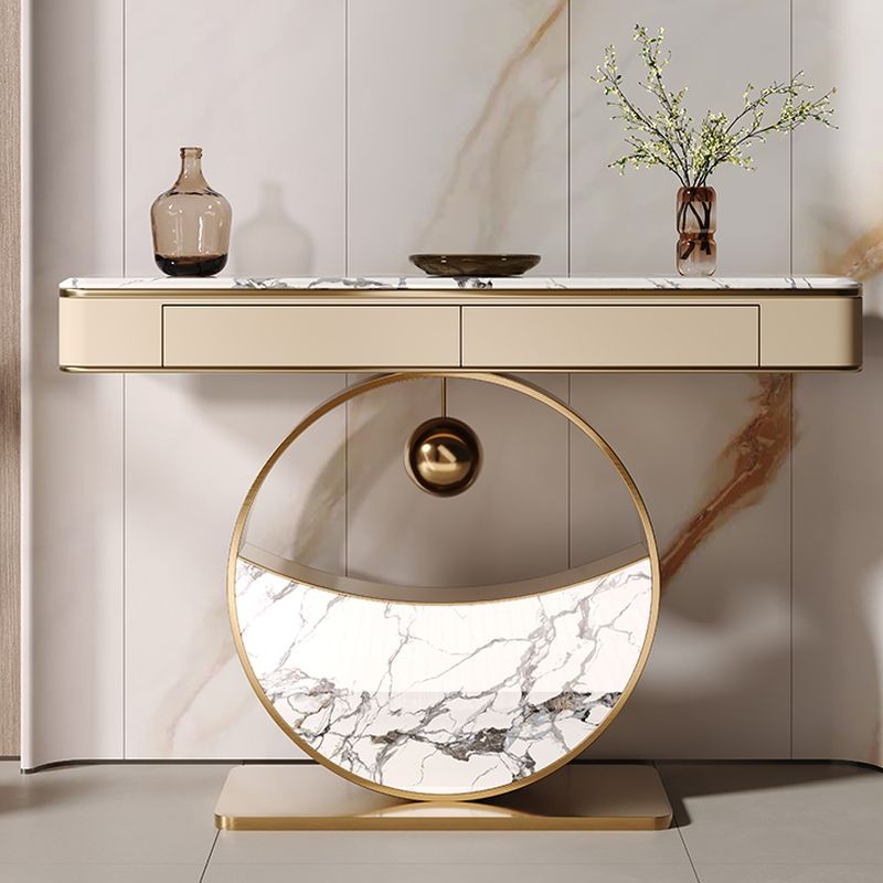 كونسول مودرن بتصميم فاخر – سطح رخامي وإطار معدني أنيق