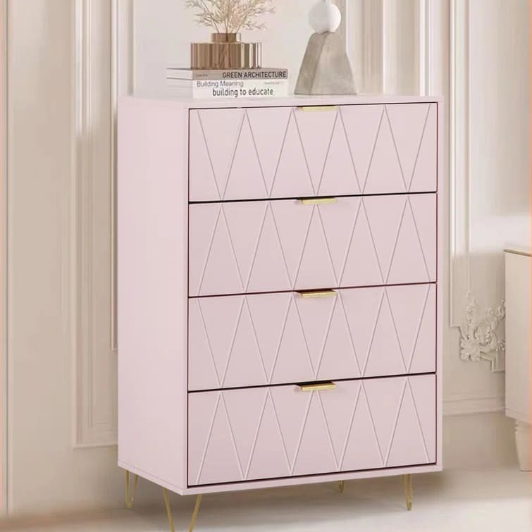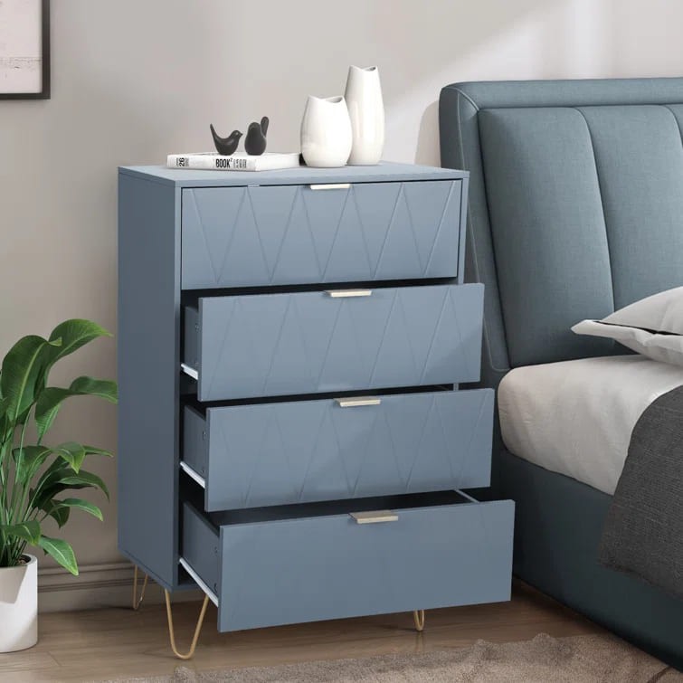 وحدة الأدراج العصرية تتميز بتصميم أنيق يتوافق مع أحدث اتجاهات الديكور. تحتوي الوحدة على أربعة أدراج كبيرة، مزينة بواجهات تحمل أشكال هندسية مثلثية متكررة تضفي مظهرًا فريدًا وجذابًا. تتميز بتوفرها بألوان متعددة تناسب مختلف الأذواق والديكورات، مثل: