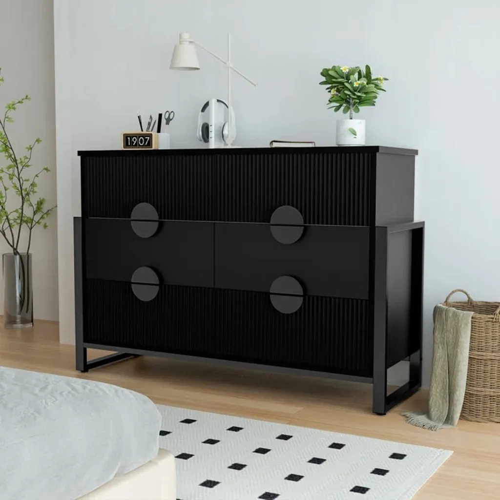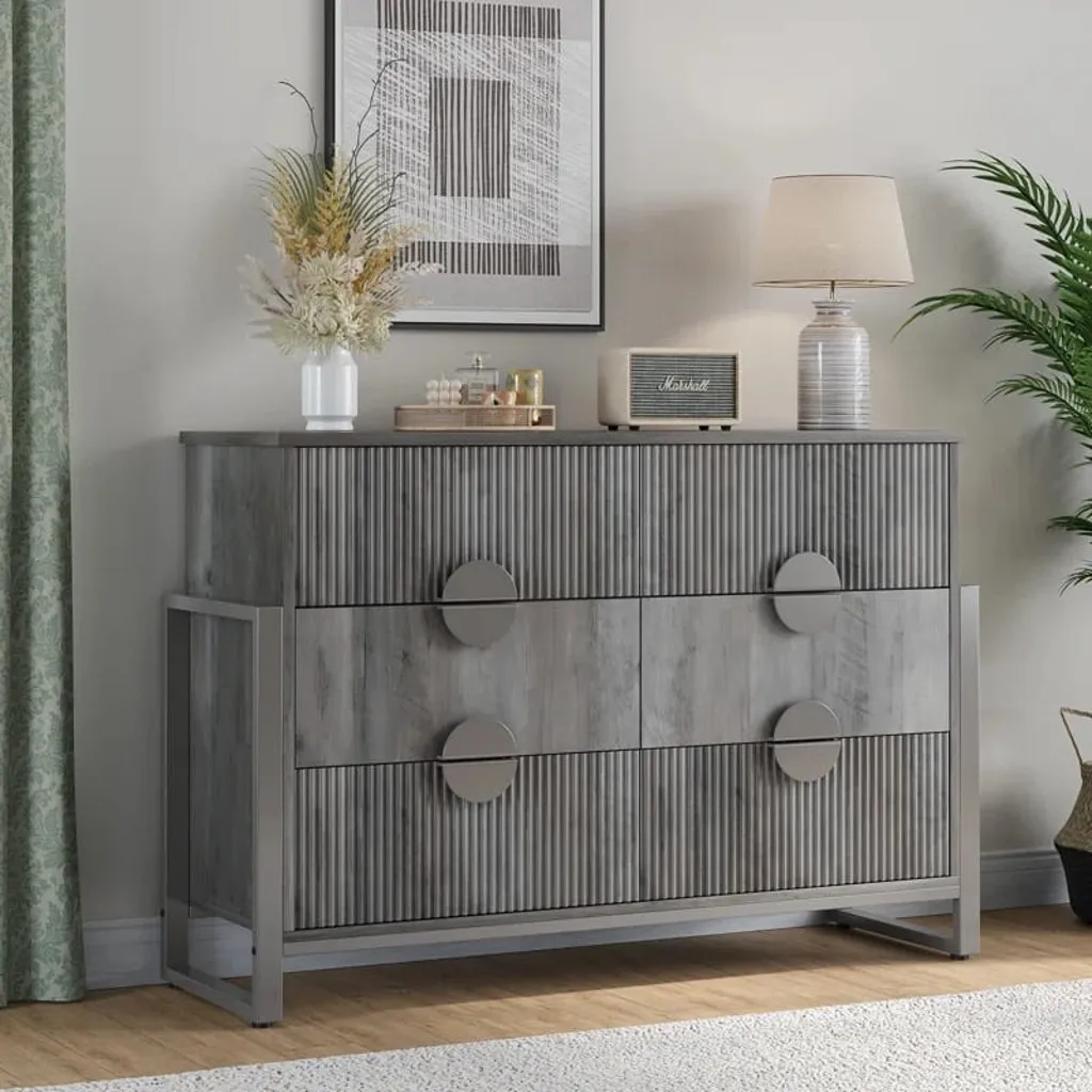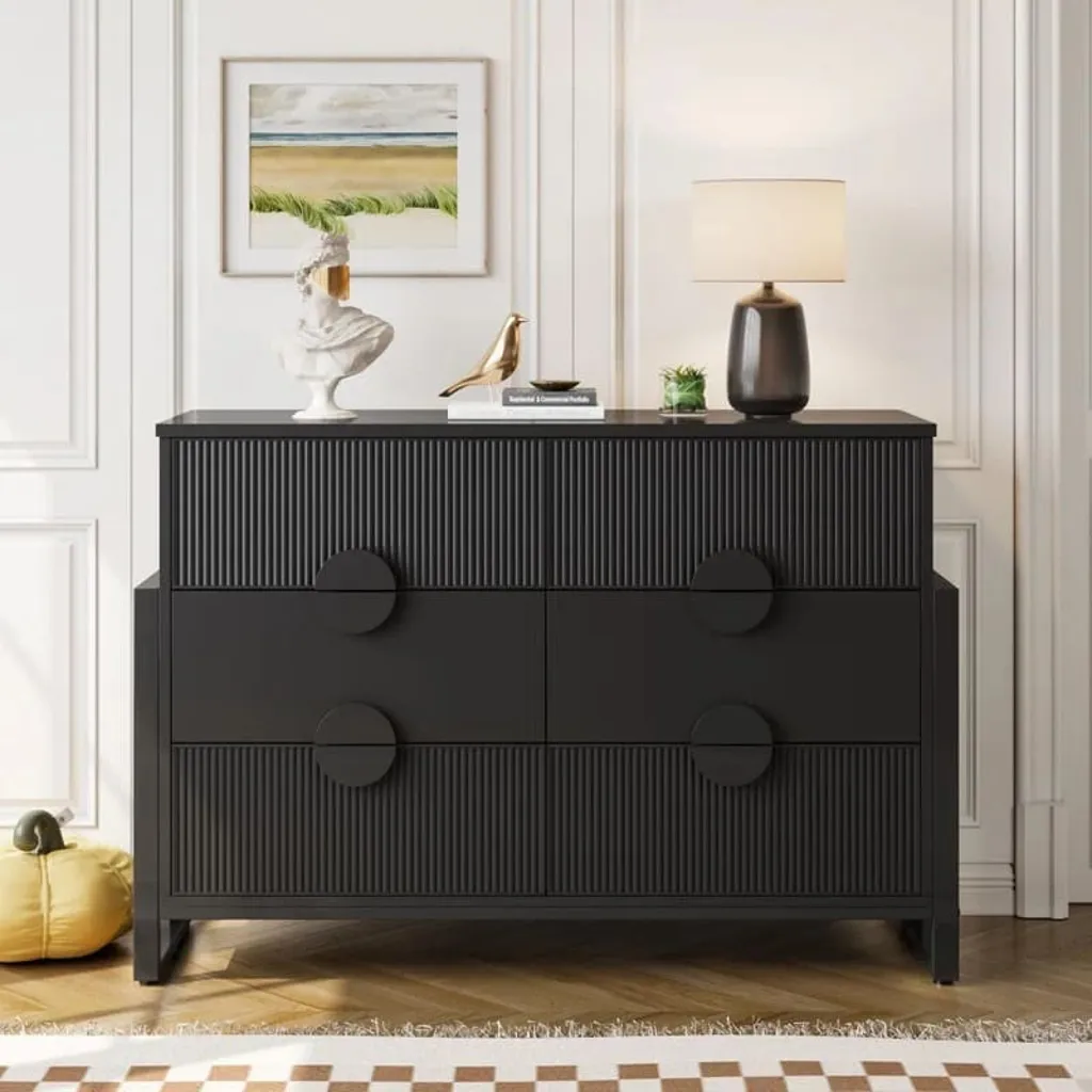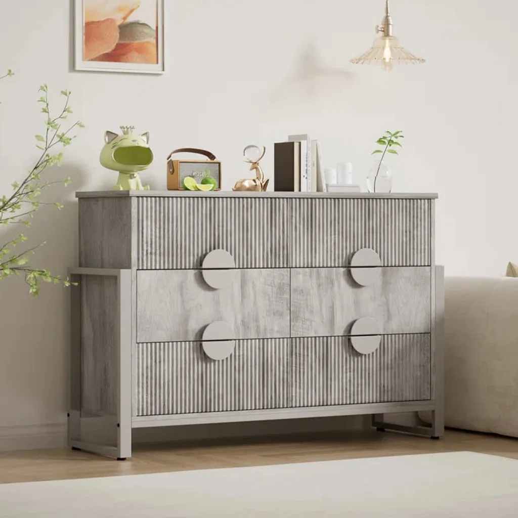 وحدة أدراج متينة مصنوعة من الخشب عالي الجودة، بتصميم عصري مميز متوفرة باللون الأسود غير اللامع واللون الرمادي الأنيق. تحتوي على 6 أدراج واسعة توفر مساحة تخزين كبيرة، مع واجهات مزينة بخطوط طولية أنيقة ومقابض دائرية فريدة تمنحها مظهرًا جذابًا.