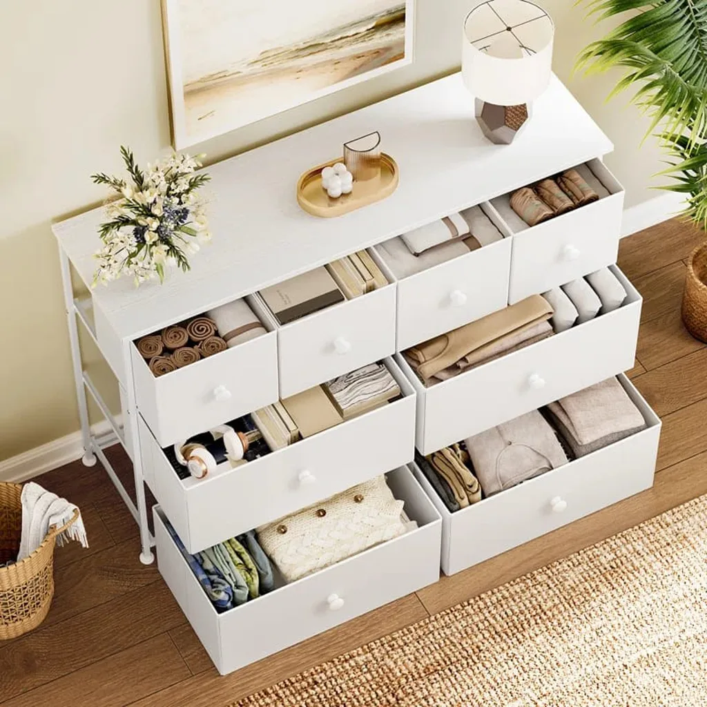 وحدة أدراج عصرية وأنيقة بتصميم مميز يلبي احتياجات التخزين والتنظيم بأسلوب عملي وجميل. تأتي هذه الوحدة بثمانية أدراج واسعة، توفر مساحة كافية لتخزين الملابس، الإكسسوارات، أو أي أغراض شخصية ترغب بتنظيمها بفعالية.