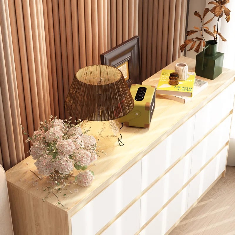 وحدة أدراج خشبية بتصميم بسيط وعصري، تجمع بين الوظائف العملية والمظهر الجمالي لتناسب مختلف الاحتياجات. تحتوي هذه الوحدة على تسعة أدراج متساوية الحجم، تُوفر مساحة تخزين كبيرة ومنظمة تُلبي جميع متطلباتك اليومية.