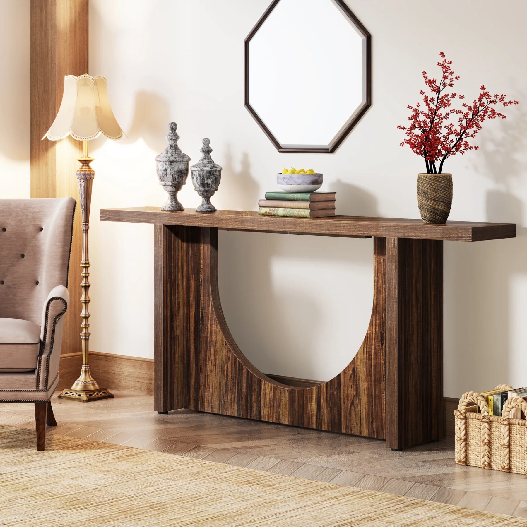 يُعد هذا الكونسول خيارًا مثاليًا للمداخل أو غرف المعيشة، حيث يجمع بين الوظيفة والجمال في تصميم واحد أنيق.